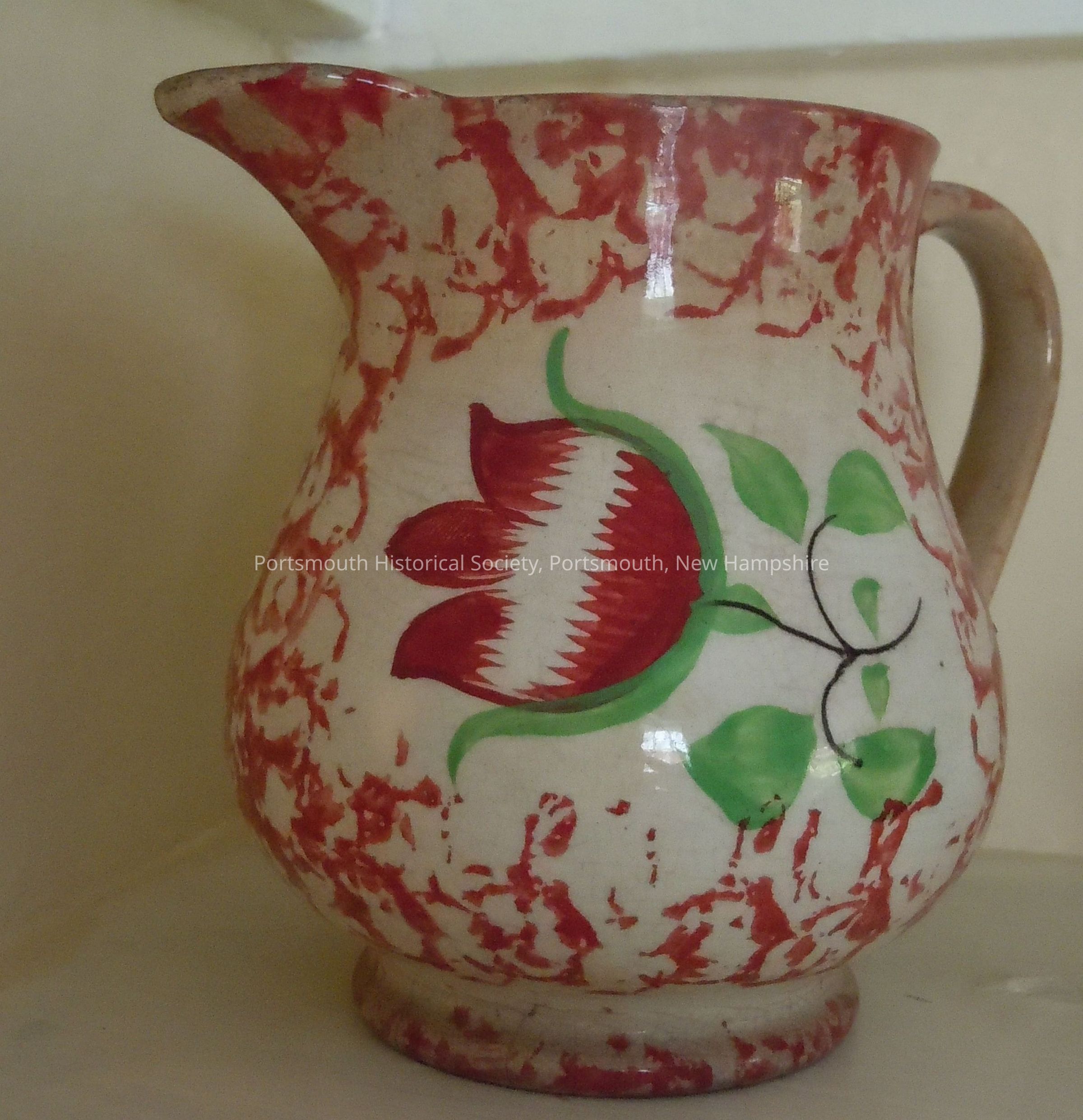 Cream color with rose spongewear design creamer; large tulip with green leaves. Gaudy dutch.