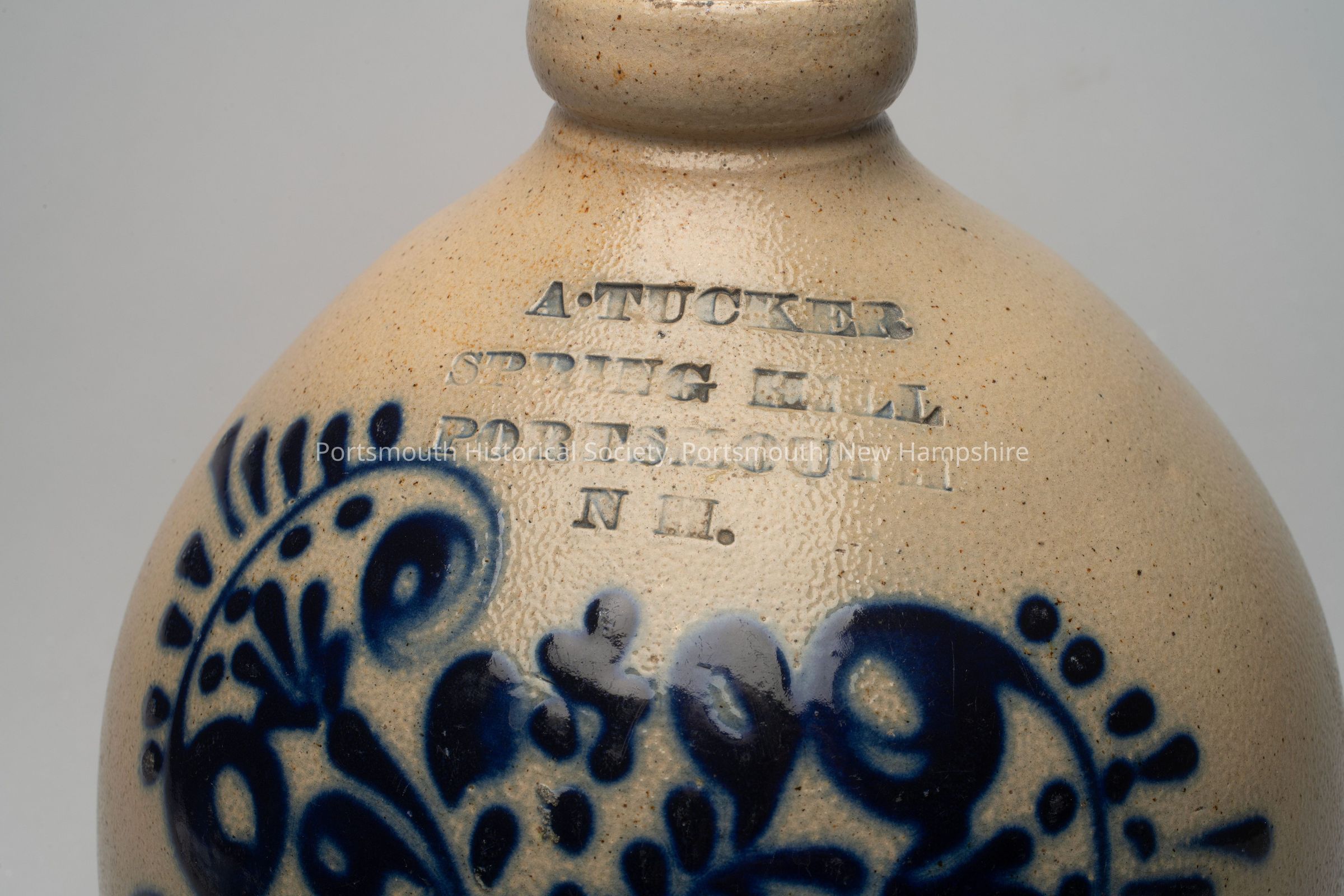 Marked "A. TUCKER / SPRING HILL / PORTSMOUTH, / N H." for Alfred Tucker (1813-1871), a Portsmouth merchant.