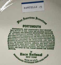 : ‘PORTSMOUTH / PORTSMOUTH, NEW HAMPSHIRE’S ONLY SEAPORT / WAS SETTLED IN 1623, THERE ARE SPLENDID EXAMPLES / OF COLONIAL AND GEORGIAN ARCHITECTURE PRESERVED / BY THE COMMUNITY’S HISTORIC HOUSES. EVERYWHERE IN / PORTSMOUTH ARE EVIDENCES OF THE PROUD POSITION WHICH / THE COMMUNITY OCCUPIED IN THE DAYS WHICH PRECEDED AND / IMMEDIATELY FOLLOWED THE REVOLUTION. LOW TIDES AT / BADGER’S ISLAND DISCLOSE REMNANTS OF THE OAK WAYS UPON /WHICH THE RANGER, RALEIGH, AMERICA, AND MANY FAMOUS / CLIPPER SHIPS WERE BUILT. THERE ARE MANY OUTSTANDING / LANDMARKS OF HISTORIC INTEREST, AND MANY HISTORICAL / HOMES ARE OPEN TO THE PUBLIC DURING THE SUMMER / MONTHS.” Modern paper sticker with blue border applied to back reads: “SAWTELLE [typed] 13 [in ink]”