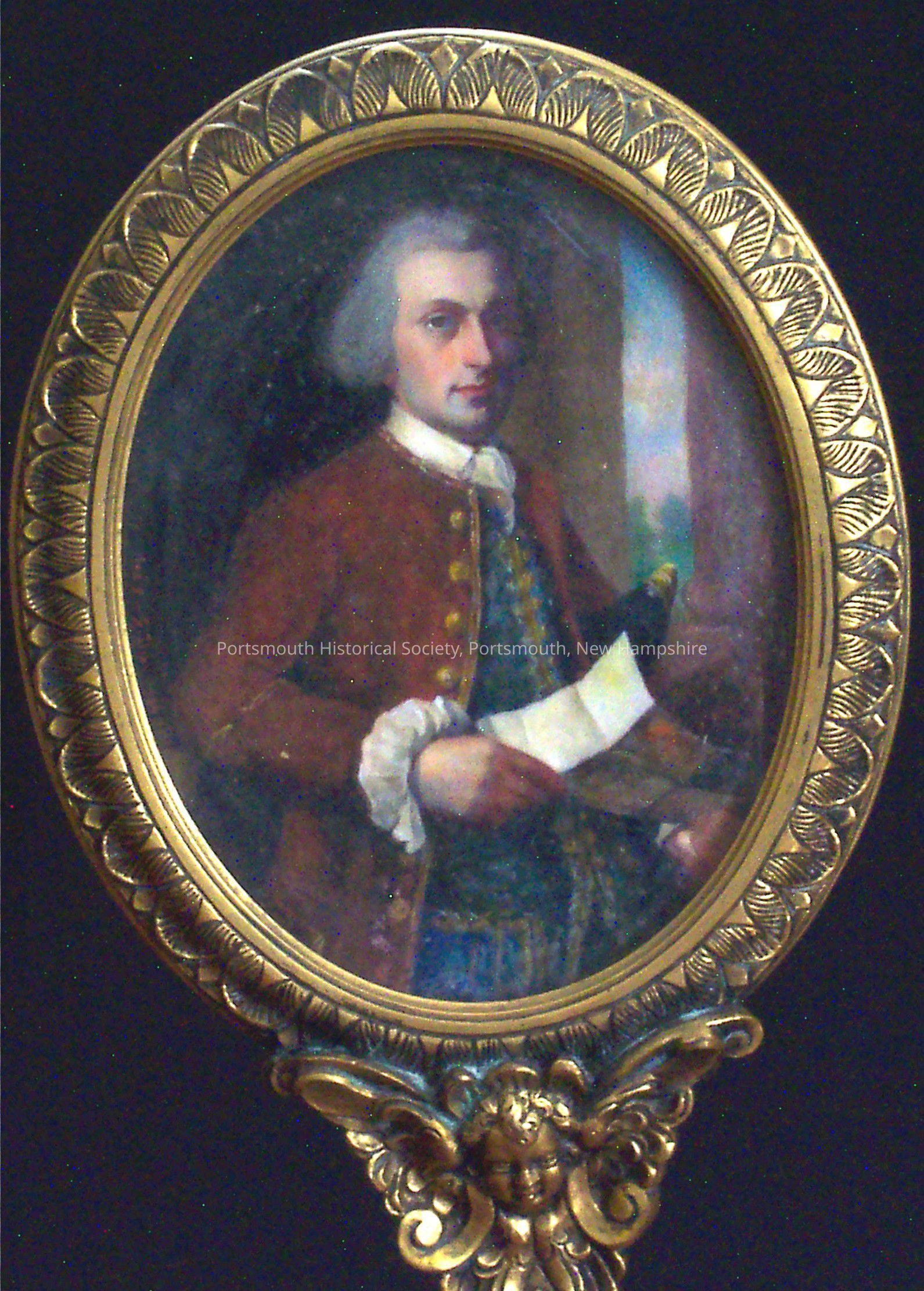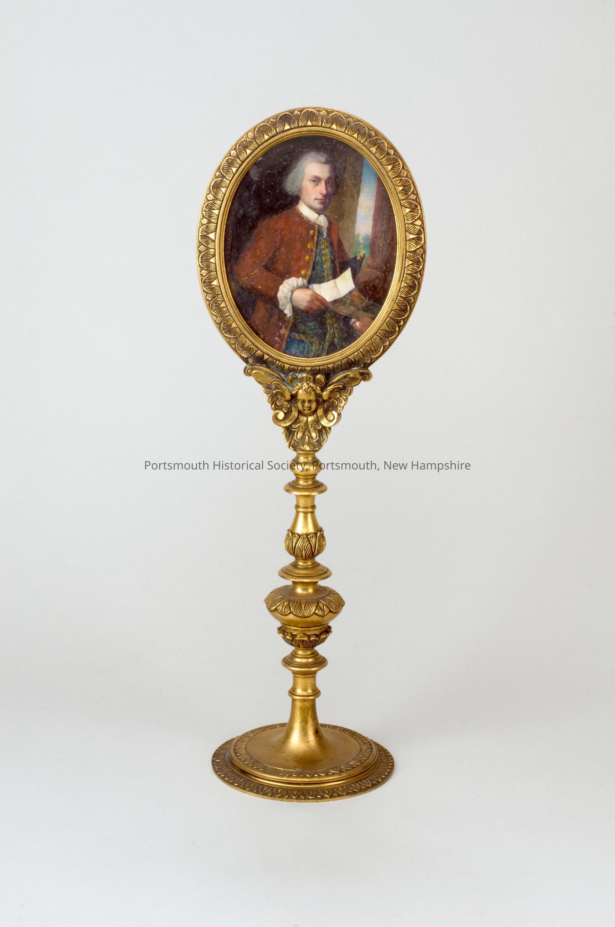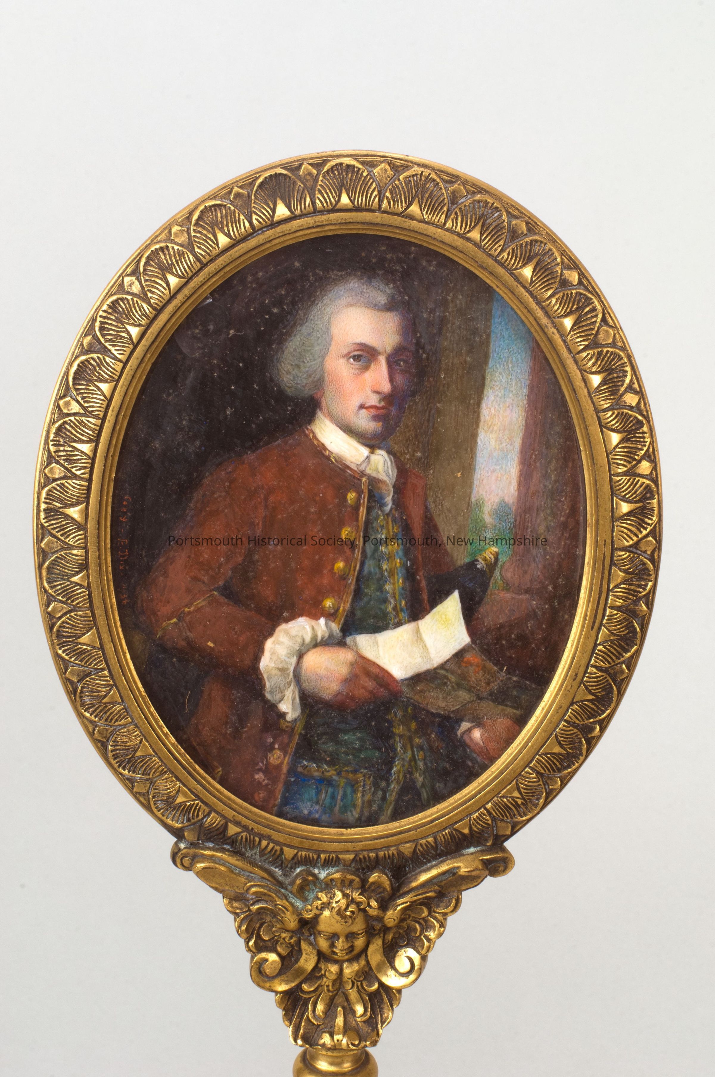 Candle shield with framed miniature of Woodbury Langdon by Eulabee Dix, copied from painting byJohn Singleton Copley (now in the Dallas Museum of Art). See also 1703.Acquisition