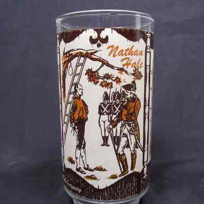 Drinking glass featuring John Paul Jones, Spirit of ’76, and Nathan Hale, Coca-Cola Heritage Collectors Series, ca. 1976. Clear glass with applied decorationCollection