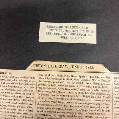 Clipping on back is from Ballou's Pictorial 8, no. 22 (June 2, 1855) in which the print is illustrated and discussed in the context of a description of N.H.