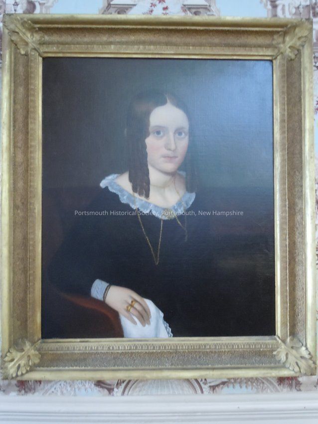 Portrait of Apphia A. Badger (1826-1901) daughter of Capt. Samuel Badger, by Joseph Treadwell. Oil on canvas with original gilt and sanded frame.