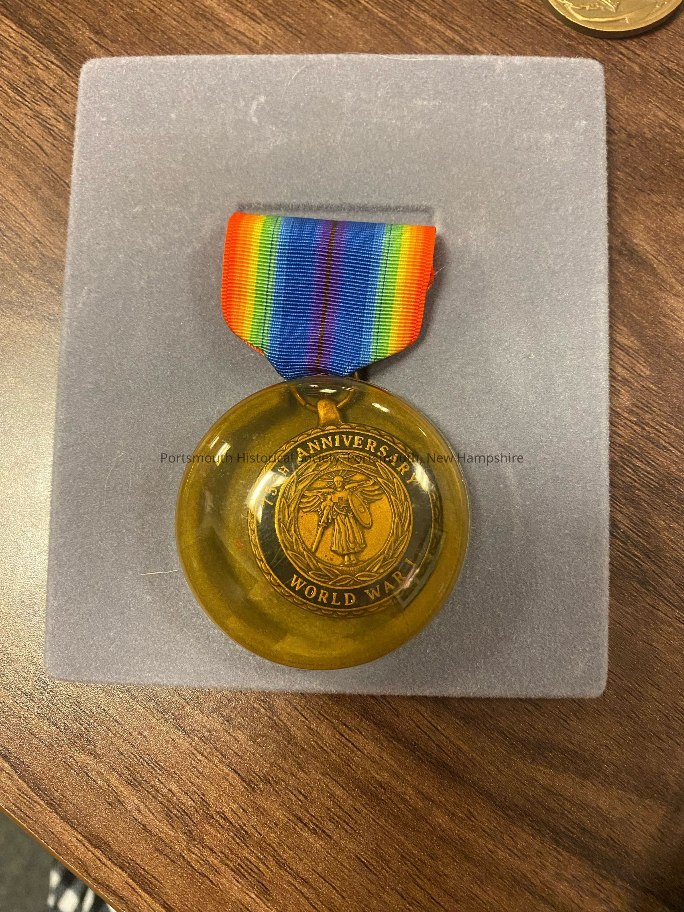 Medal is attached to plastic flocked backing with a plastic dome cover.Acquisition