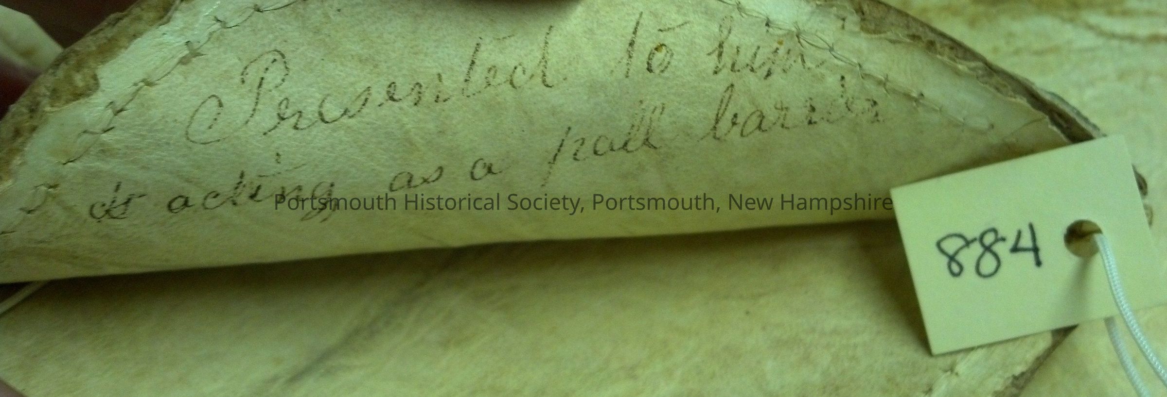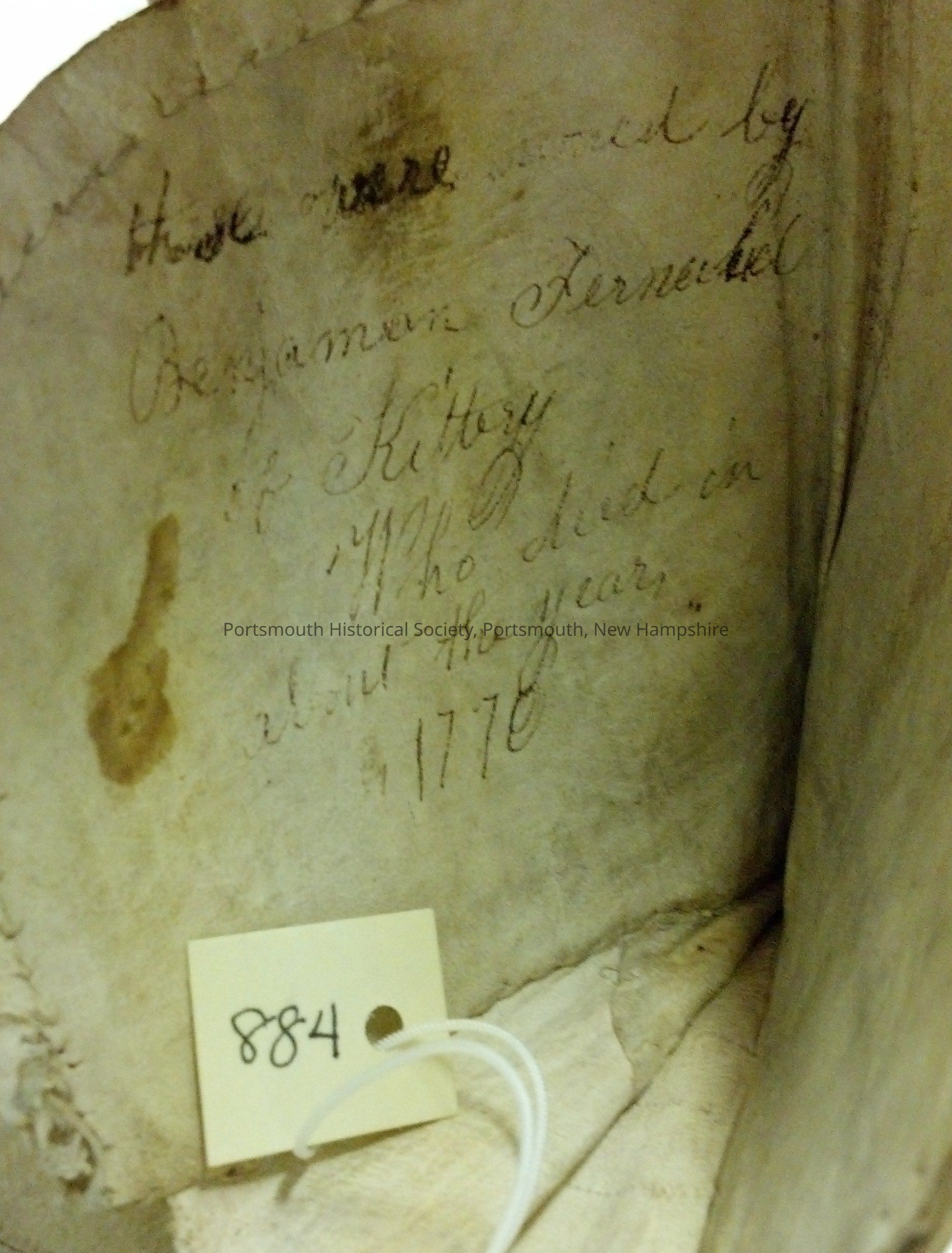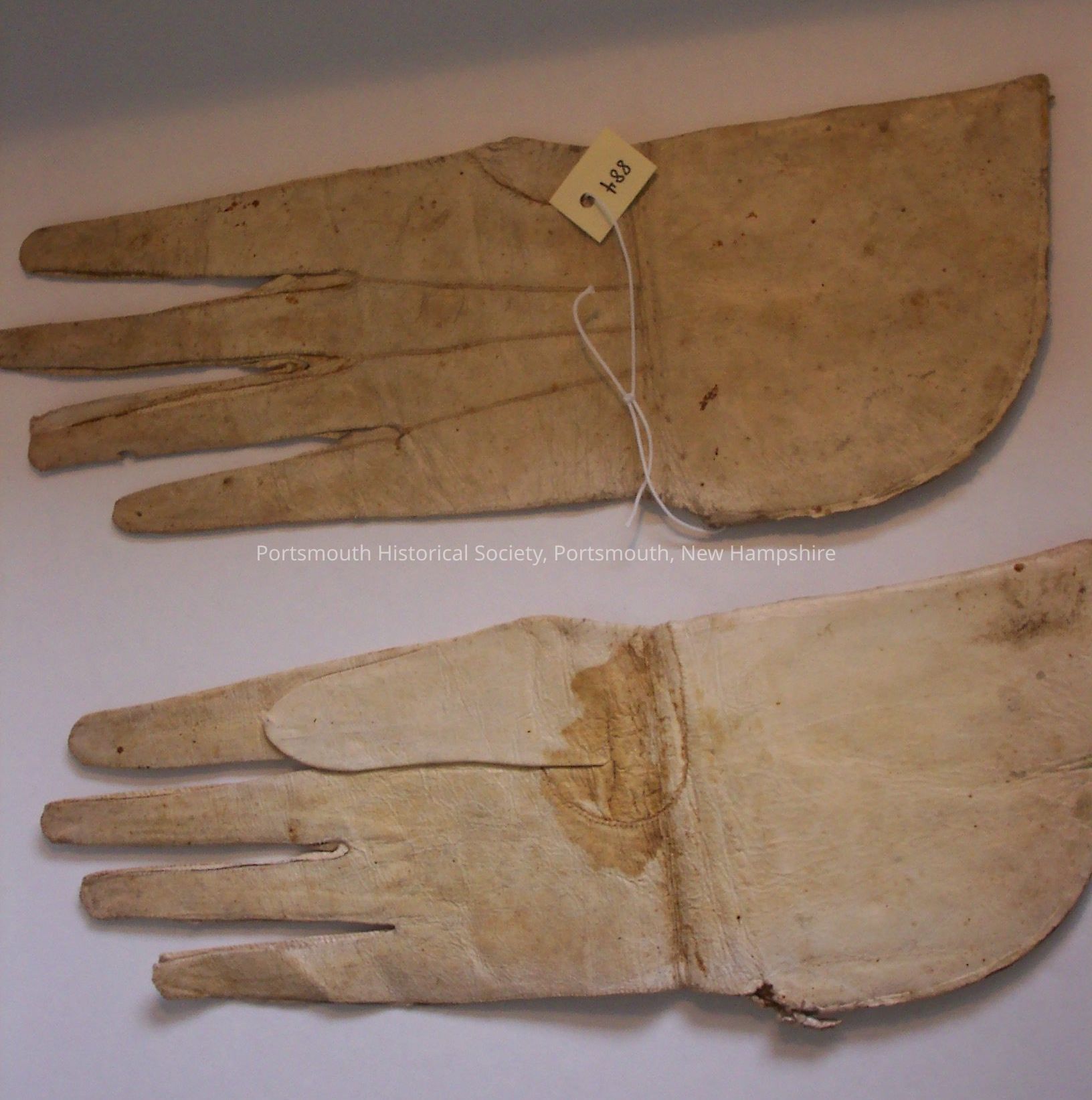 Old label reads: "These gloves were owned by Benjamin Fernald of Kittery, Maine who died about 1770. They were presented to him for acting as pall bearer."Acquisition