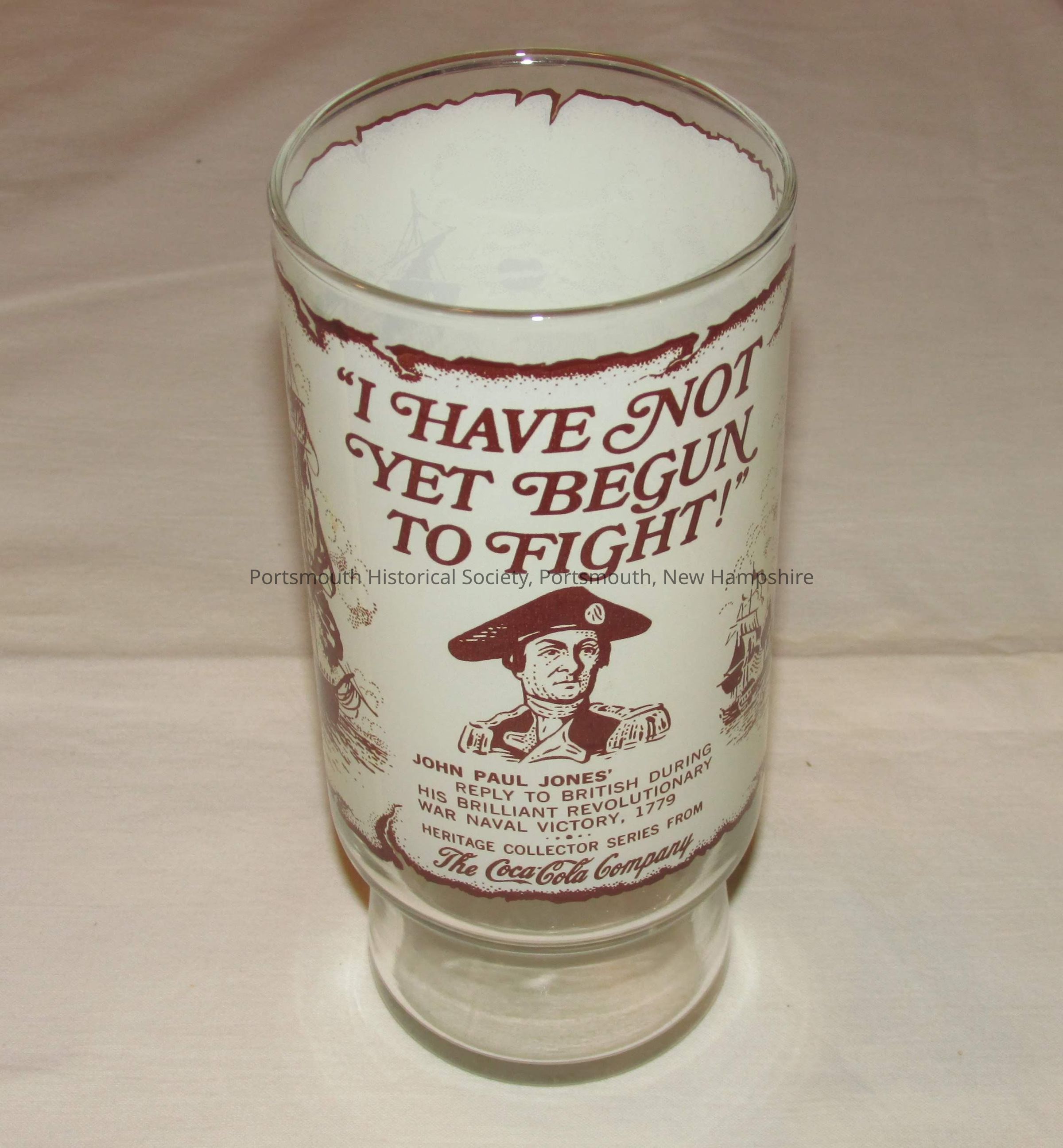 Drinking glass featuring JPJ and I Have Not Yet Begun To Fight, Coca-Cola Heritage Collectors Series, ca. 1976. Clear glass with overlay decorationAcquisition