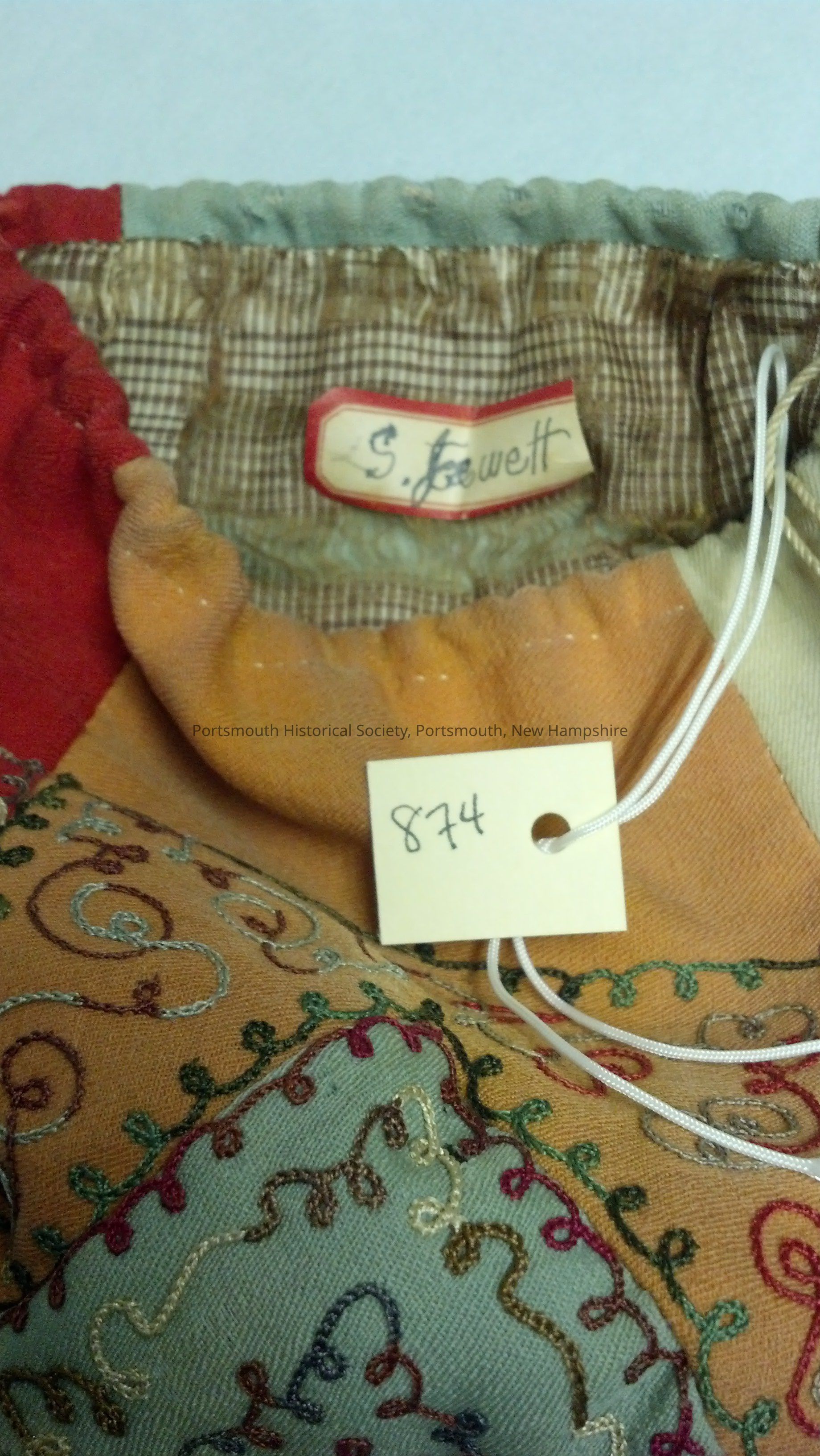 The source of this object is Miss Susan J. Jewett. Jewett lived at 75 Sewall Ave, Brookline, MA. Jewett most likely gave this item in the 1940s.Acquisition