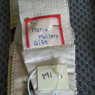 Suspenders were made by Sarah Pettigre for her husband-to-be Charles Pickett; gift of Marie Pickett McClary, September 27, 1958.