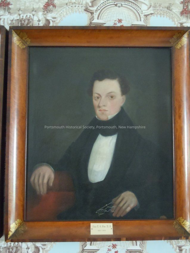 Framed oil portrait of Dr. John T.G. Pike, son-in-law of Samuel M. Dockum. Gilded frame, probably made by Samuel Dockum, with leaf design in the corners. "John T.G. Pike MD 1814-1879" on brass plate affixed to frame.Type of Painting