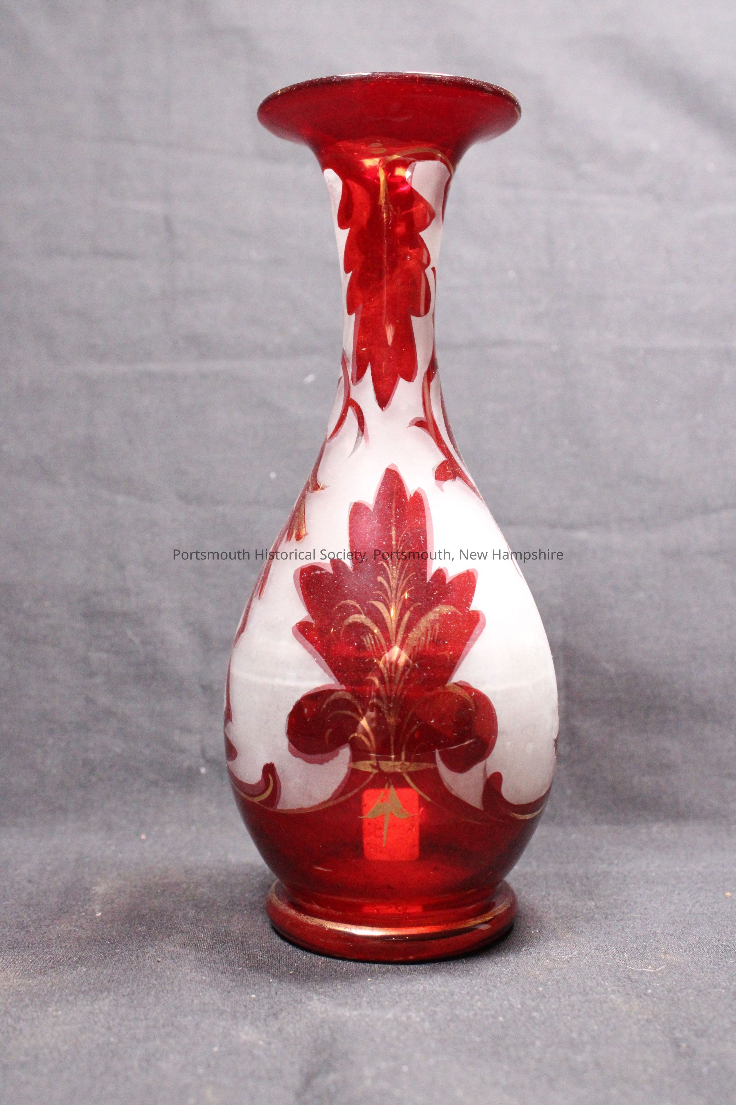 Small ruby-red and white Bohemian-style glass vase.