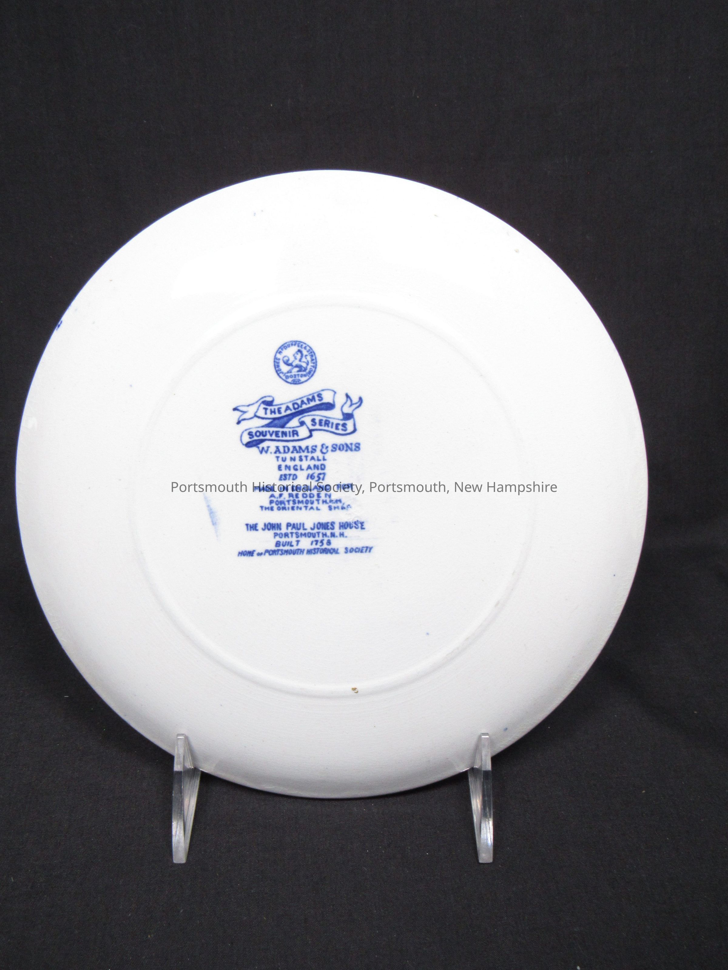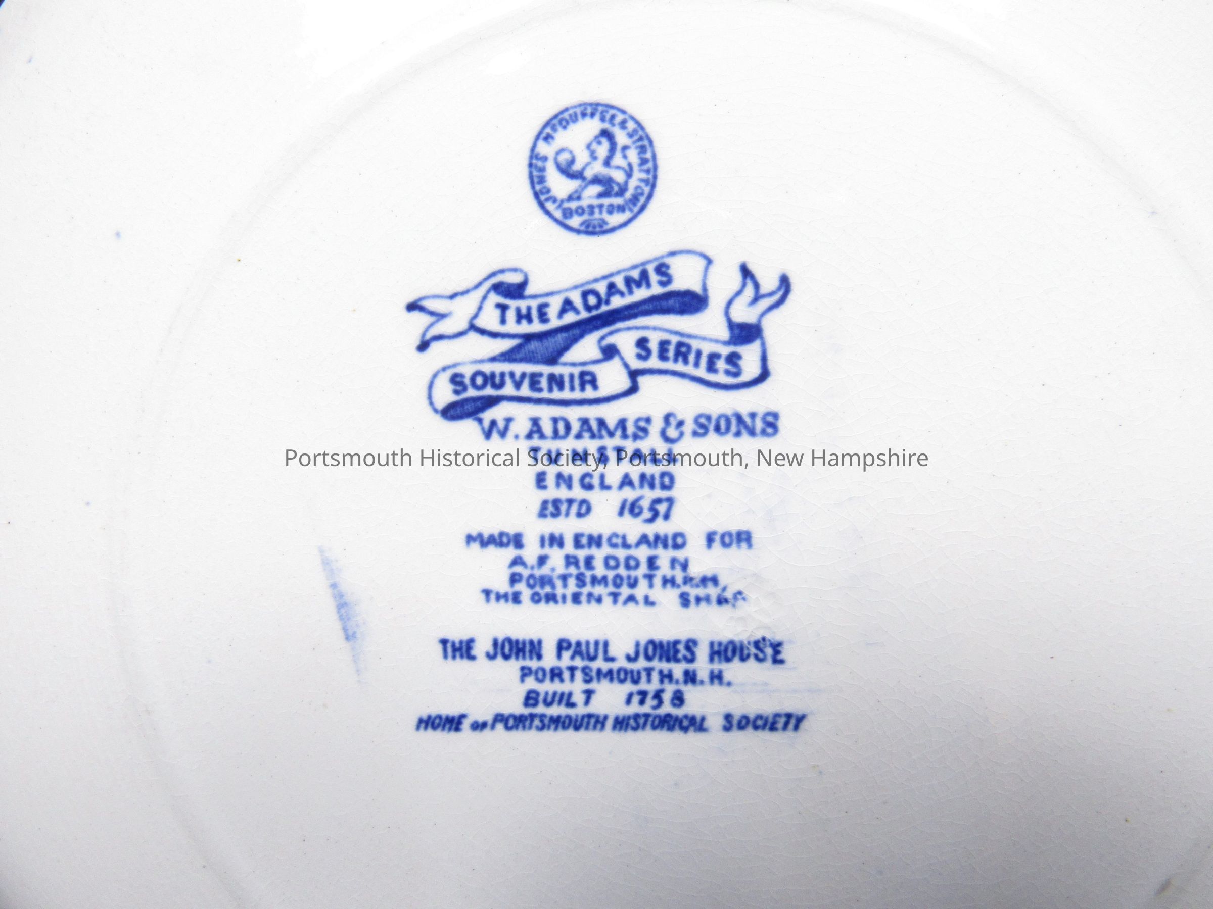 W. Adams & Son; A.F. Redden (retailer), souvenir plate (John Paul Jones House), Tunstall, England, mid 20th centuryEntry/Object ID