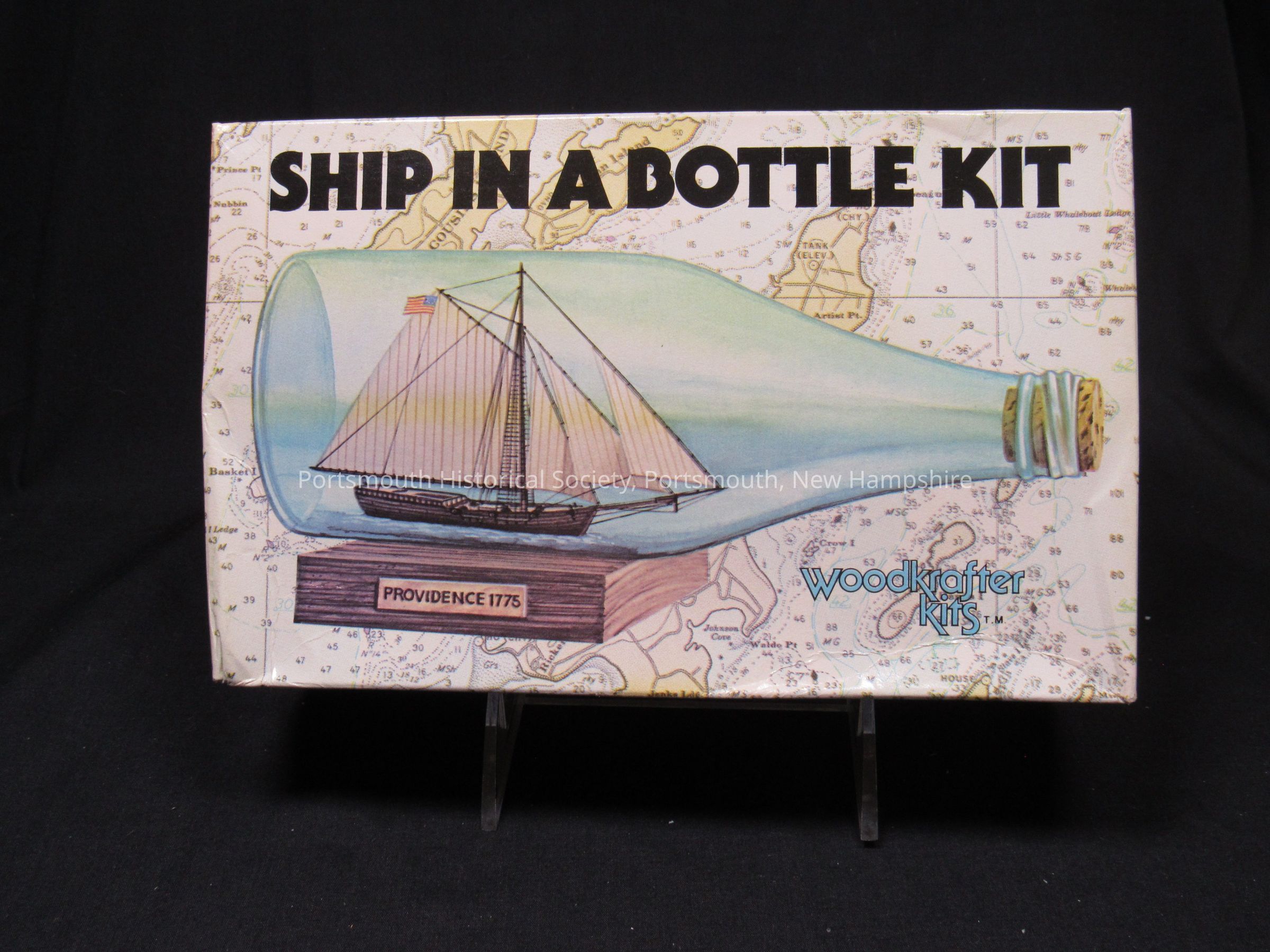 “Ship in a Bottle Kit, Providence 1775” (shrink-wrapped in box). Woodcrafter Kits, Yarmouth, Maine 04096. Copyright 1980. H. 2 5/8 in., W. 8 3/8 in., D.5 ¼ in. N: Some damage to shrink-wrap.Acquisition