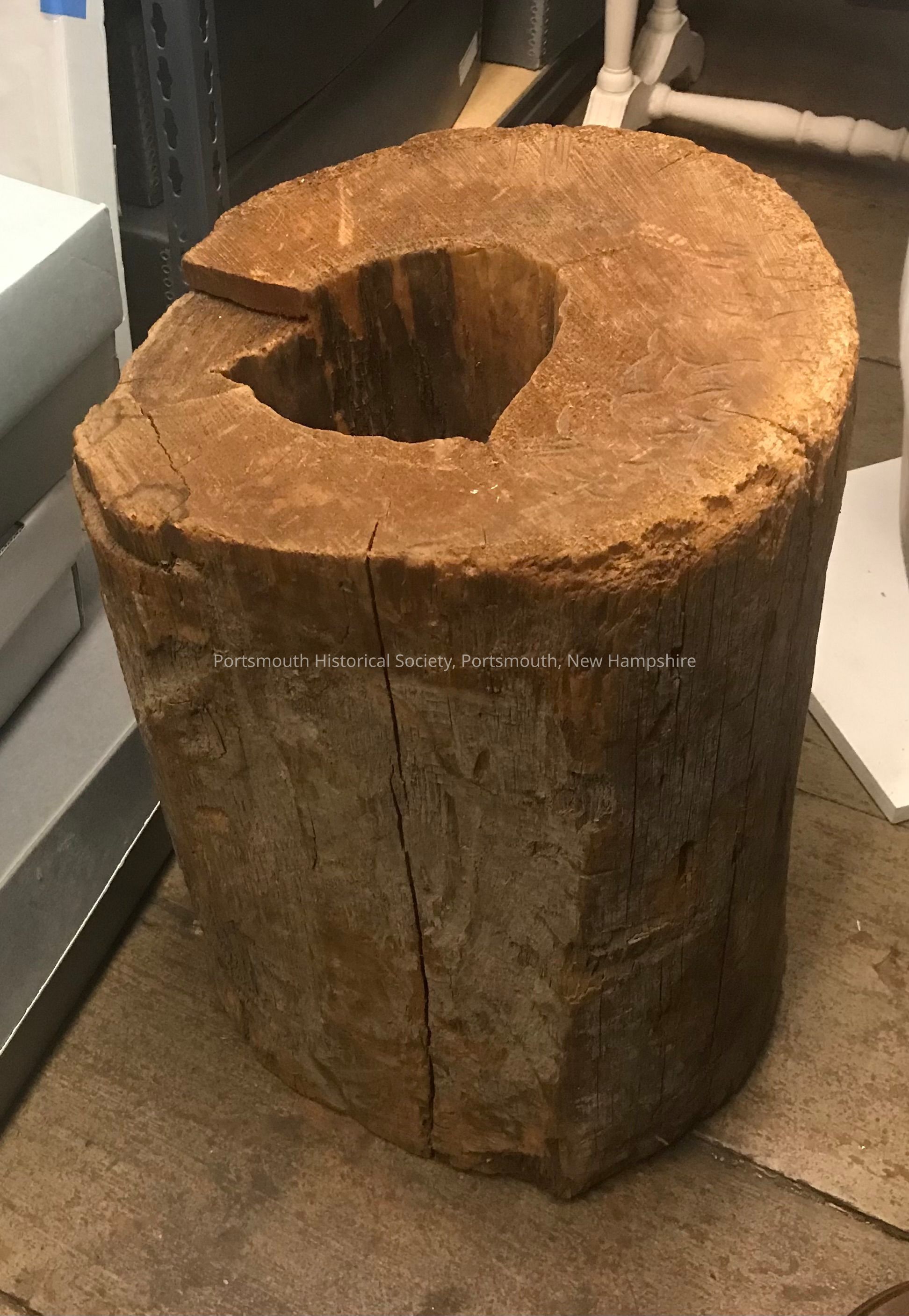 Small piece of wooden water pipe that was part of the Portsmouth water system installed starting in 1797. See also 615 for two small sections of the same system.Acquisition