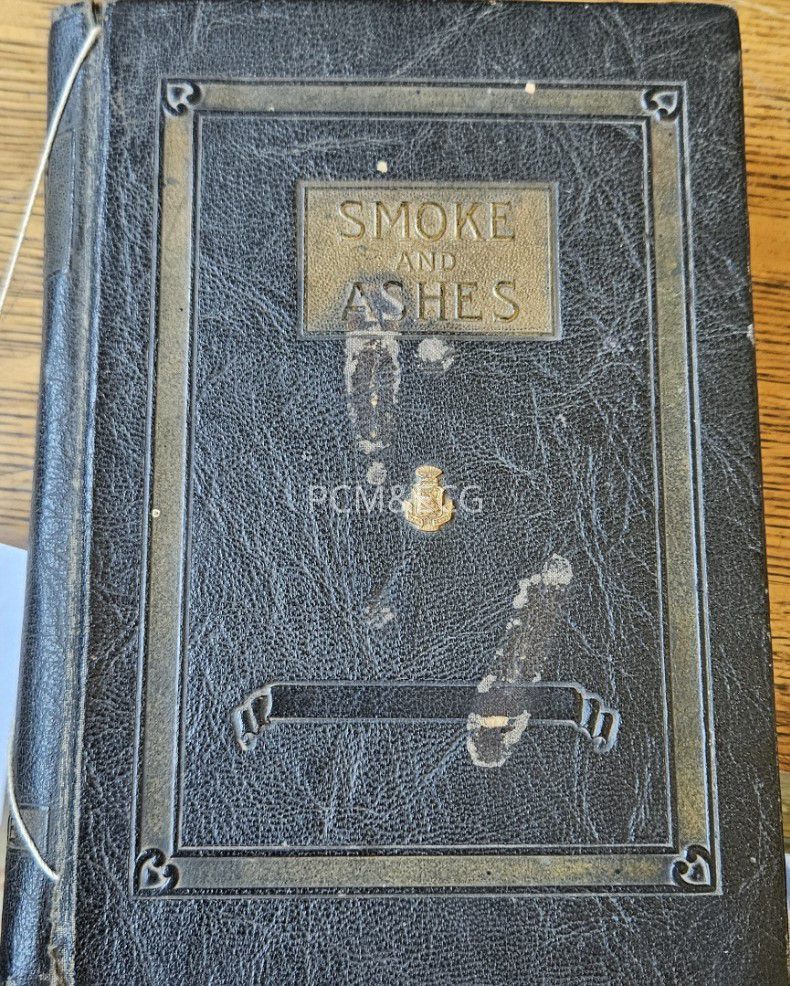 Faux book titled Smoke and Ashes with compartments for cigarettes, matches, and ashes inside.Acquisition