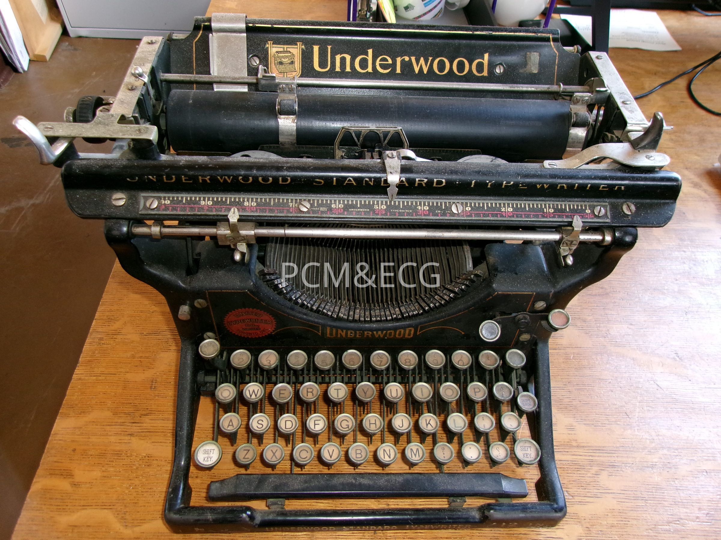Underwood typewriter 12in circa 1920s - distributed by Toronto Typewriter Co. It had been a part of the family for at least since the 1940s all of us kids learned to type on it.Acquisition