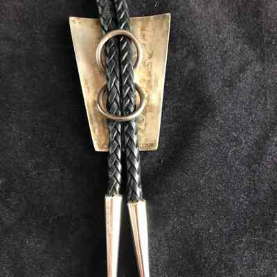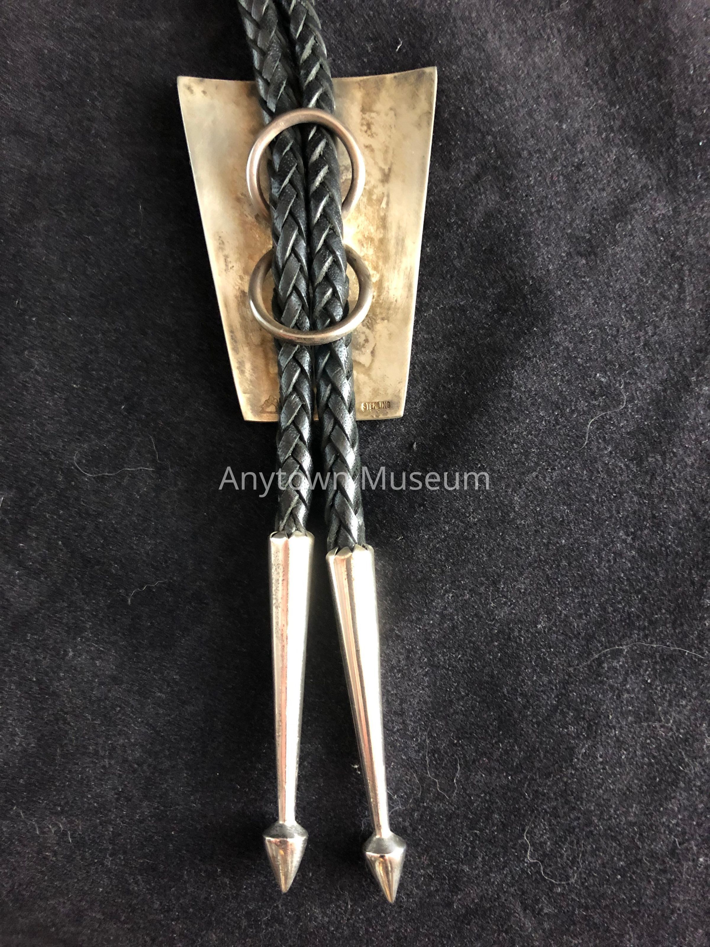 Trapezoidal bolo tie depicting a full corn plant, including the roots made by Ed Kabotie
