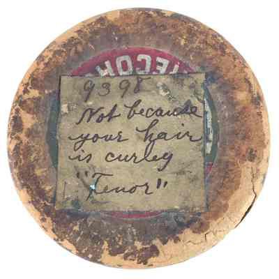 Wax cylinder recording of "Not Because your Hair is Curly" in its original containerContext