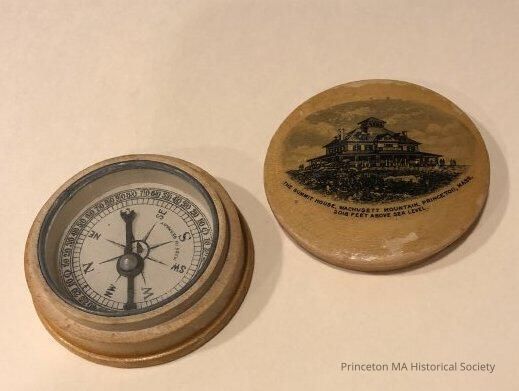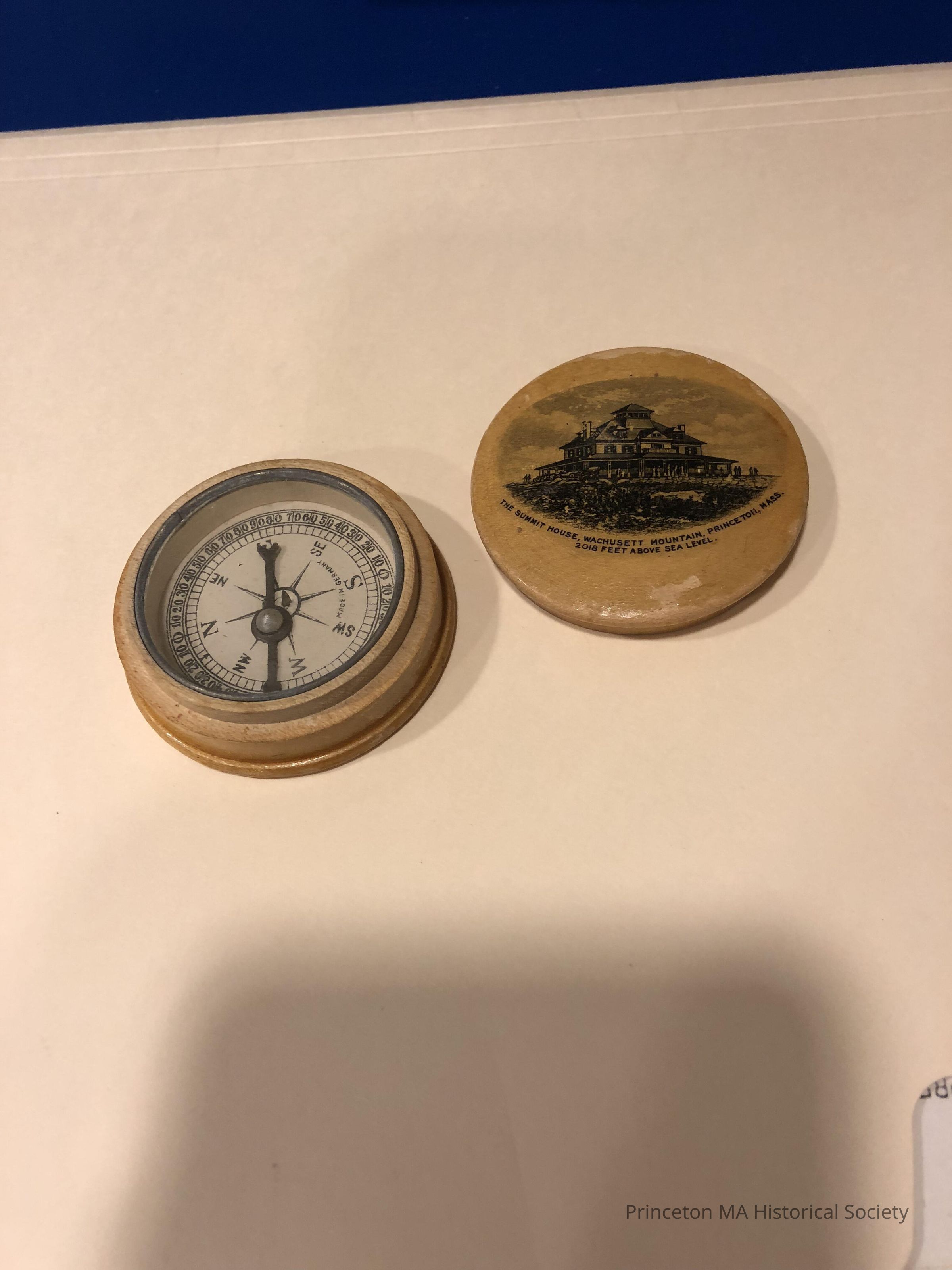 Mauchline Ware Souveniers depicting Wachusett Mountain House number three. Small wooden compas coverLocation