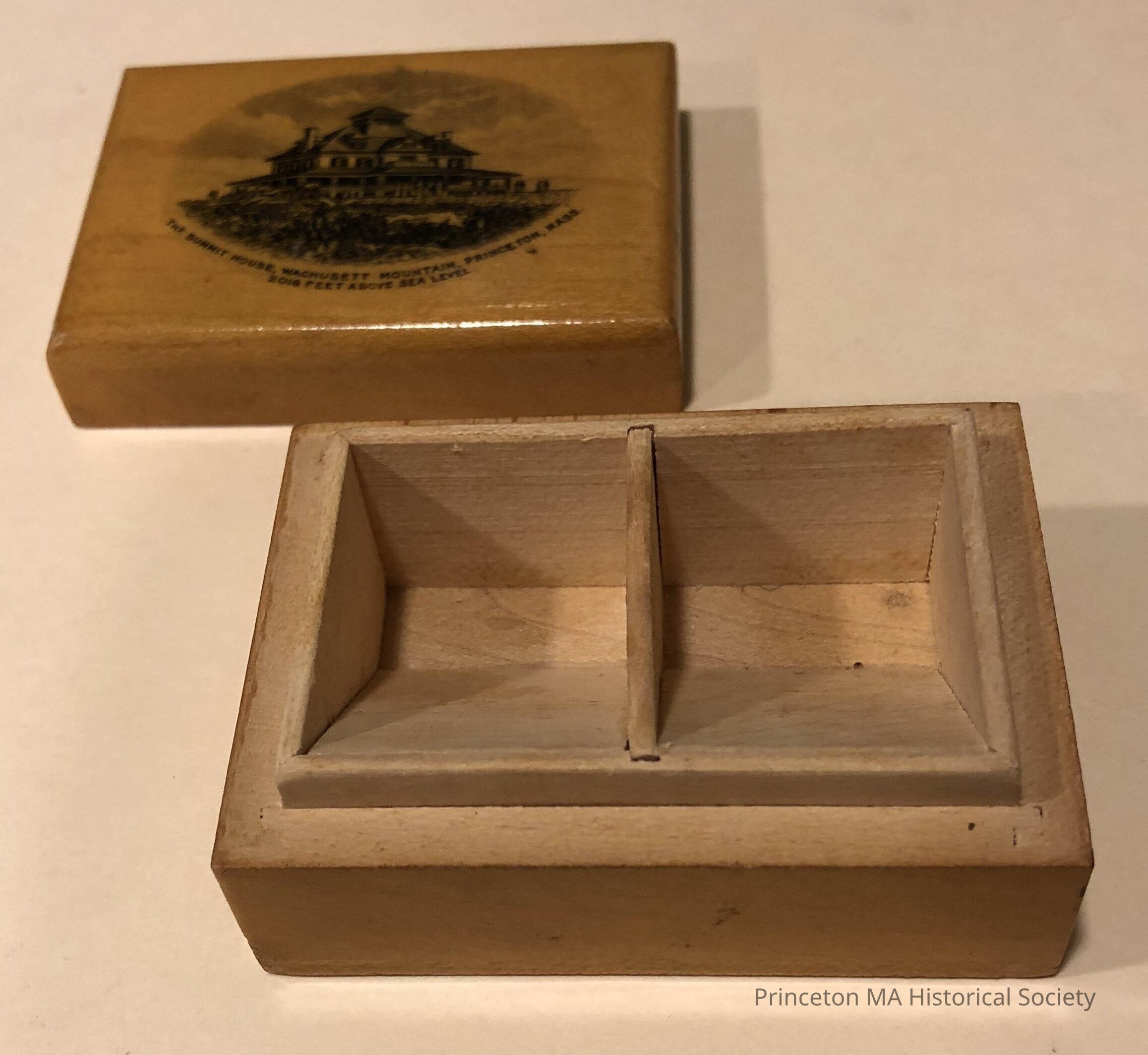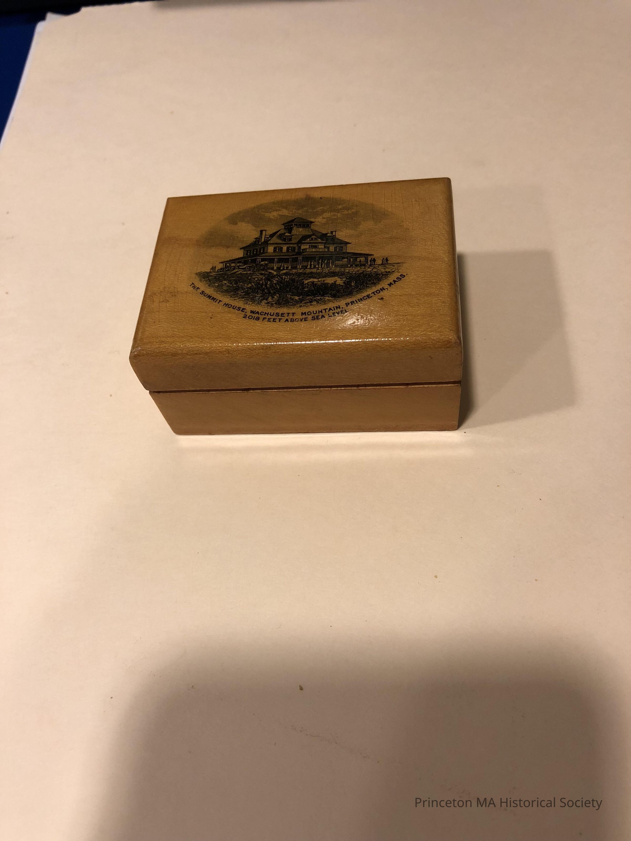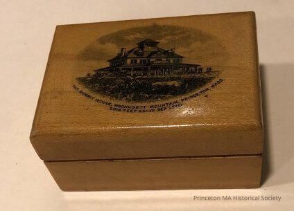 Mauchline Ware Souveniers depicting Wachusett Mountain House number three. Small wooden stamp box cover.Location