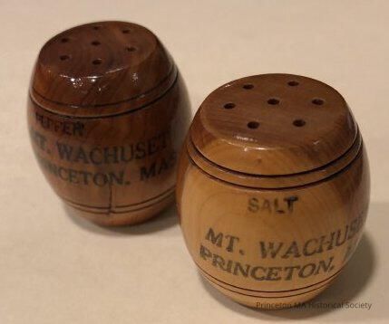 Mauchline Ware Souvenier. Small round barrel shaped pepper shaker. Marked Pepper Mt. Wachusett Princeton Mass.Location