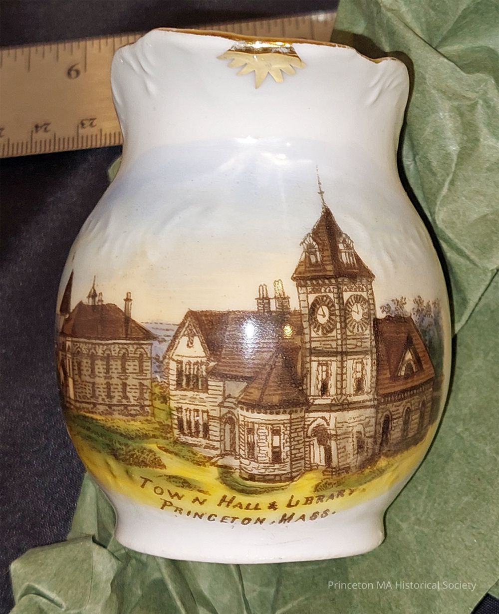 Medium Pitcher with hand painted color view of the Library and Bagg Hall.