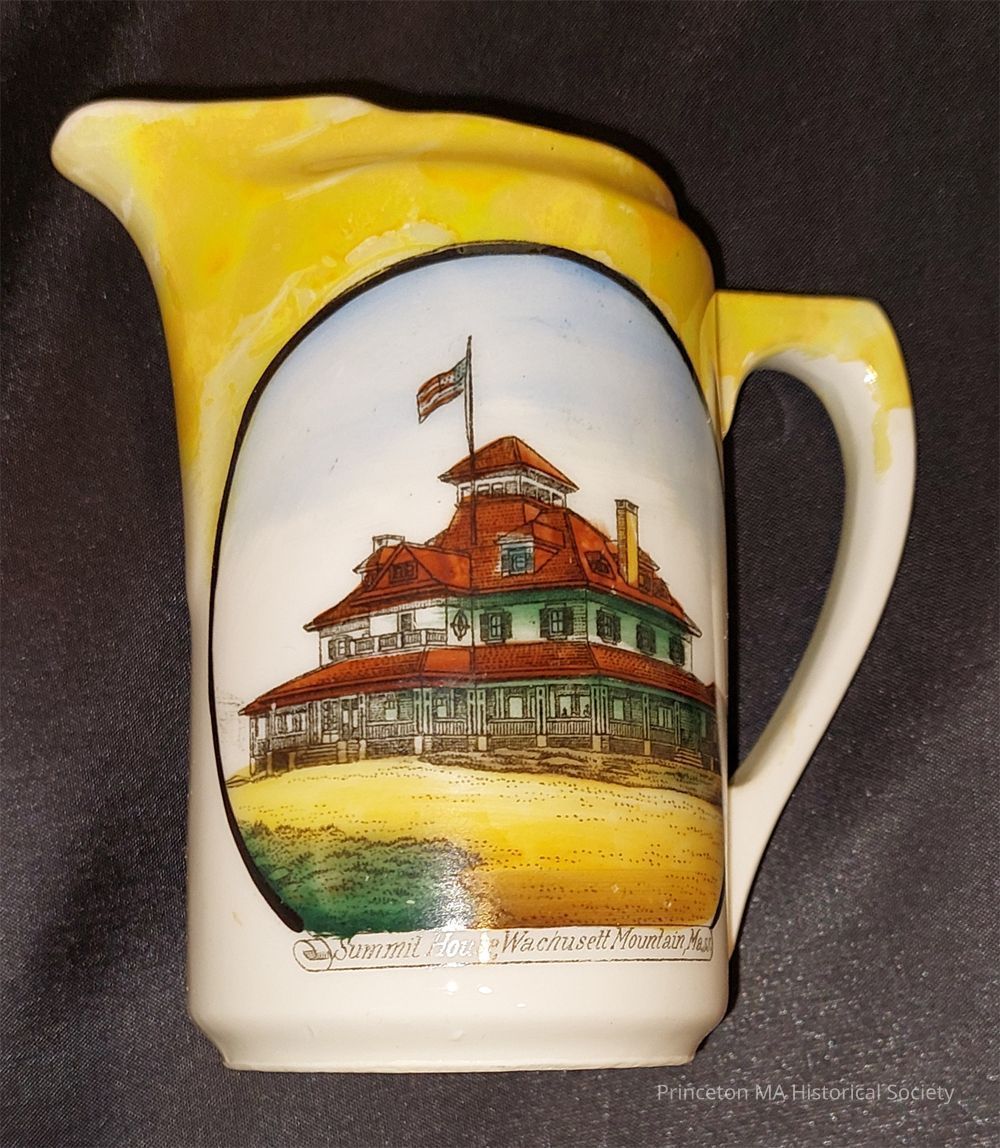 Small Pitcher with hand painted color image of the Third Summit House - Yellow