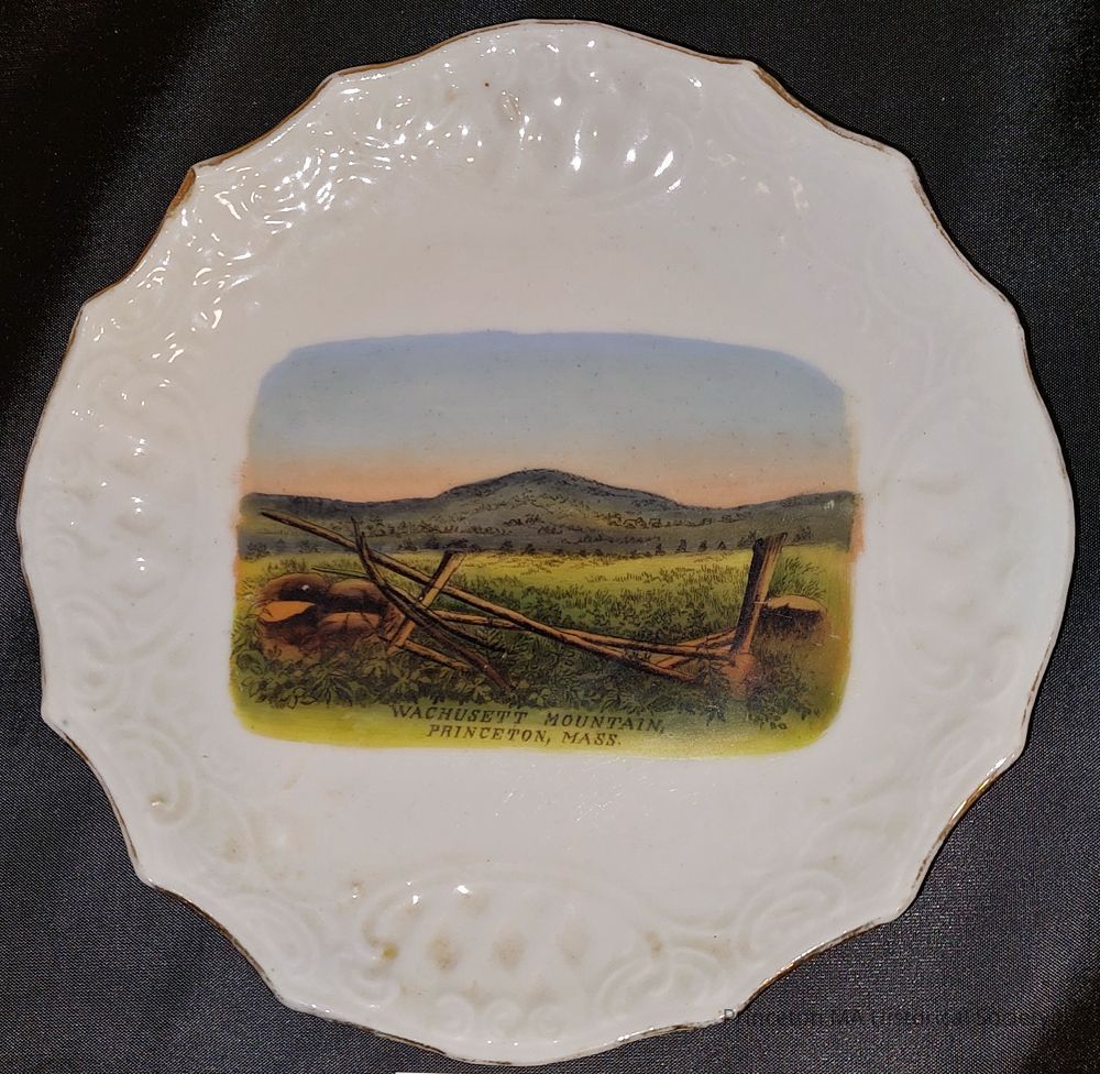 Small Plate with hand painted color view of Wachusett Mt. across a field