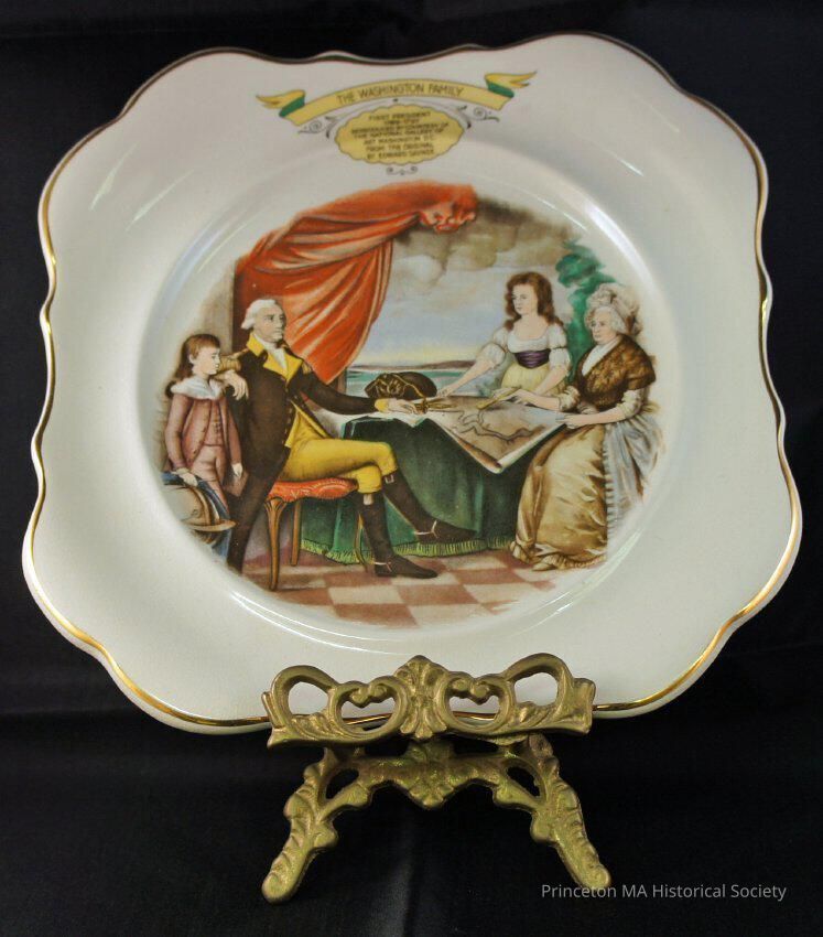 This is a square porcelain plate with a color reproduction of "The Washington Family" from the original by Edward Savage, courtesy of the National Gallery of Art, Washington, DC.Dimensions