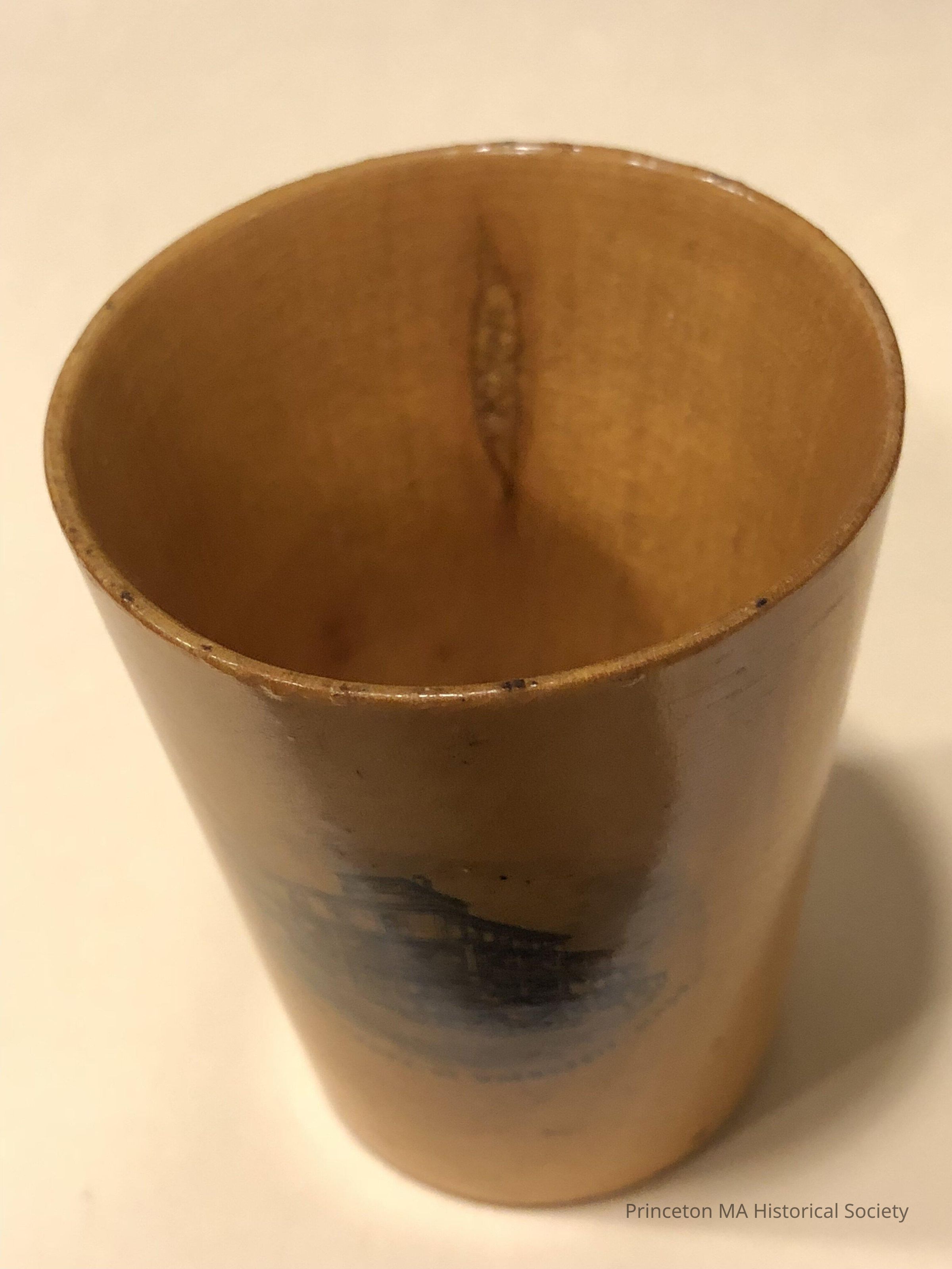 Wooden Souvenir showing Wachusett Summit House number two. Mauchline Ware. Small wooden cup.Location