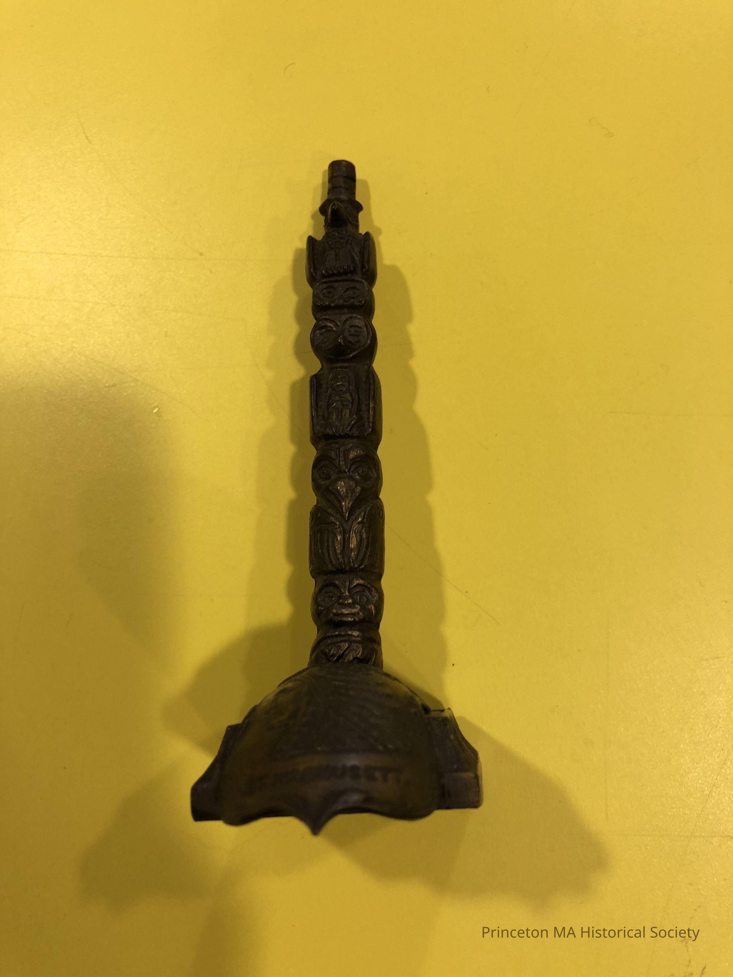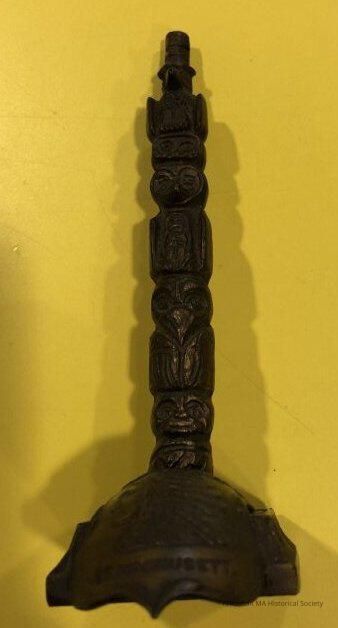 Metal Totem Pole with Indian in full headdress marked Mt. WachusettLocation