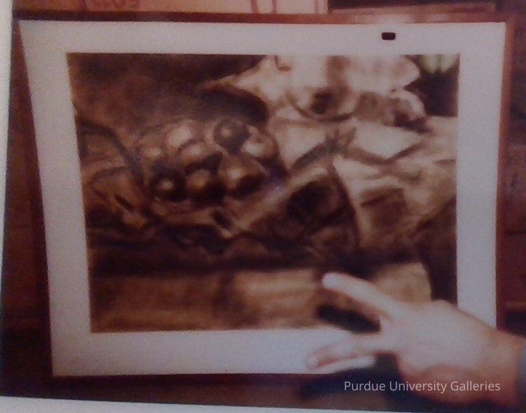 Bowl of Apples on a table, pitcher; done by a purdue student artist