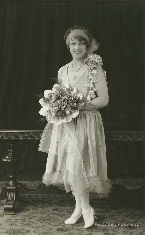 Young Lady Holding Bouquet of Flowers