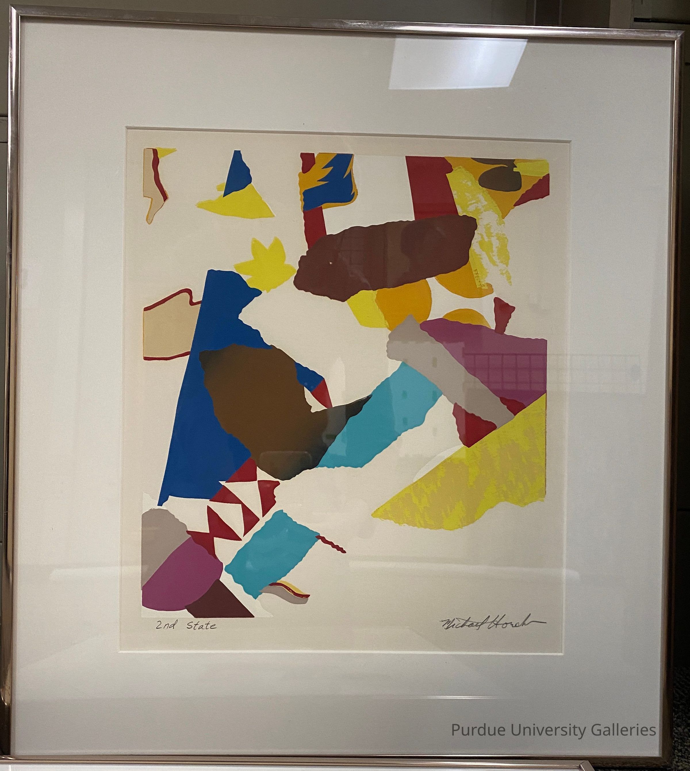 Abstract multi-color screenprint. Layering makes appearance of collage