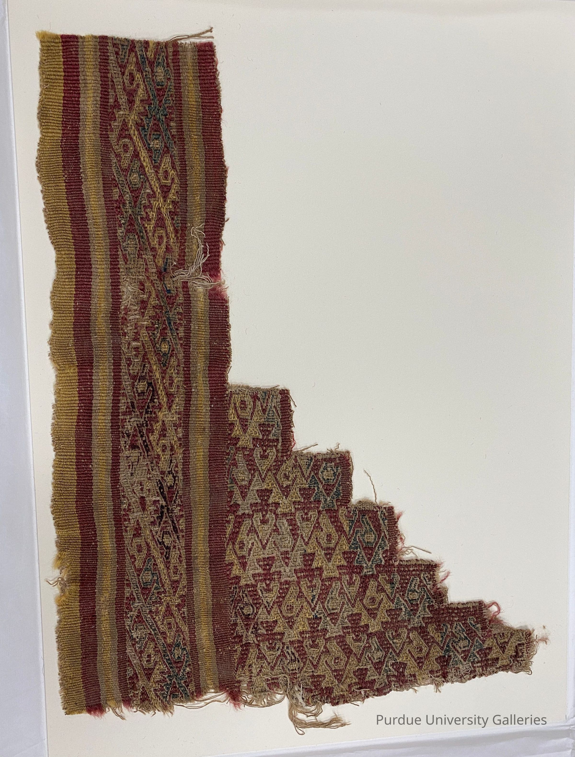 Corner of wrapping cloth in brocade technique with stylized bird motifs in red, yellow, brown, blue, and gray.Acquisition