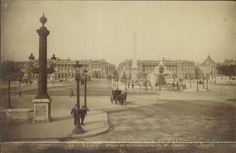 It became the Place de la Révolution and held in its center the guillotine that executed in particular Louis XVI, Marie-Antoinette, Danton, Robespierre, and 2800 others between 1793 and 1795. It is said that the smell of blood was so strong that a herd of cattle refused to cross the place. After the Revolution it suffered a series of transformations et several changes of name: place de la Concorde, place Louis XV again, place Louis XVI, place de la Chartre, and once again place de la Concorde to symbolize the end of a troubled era and the hope of a better future.