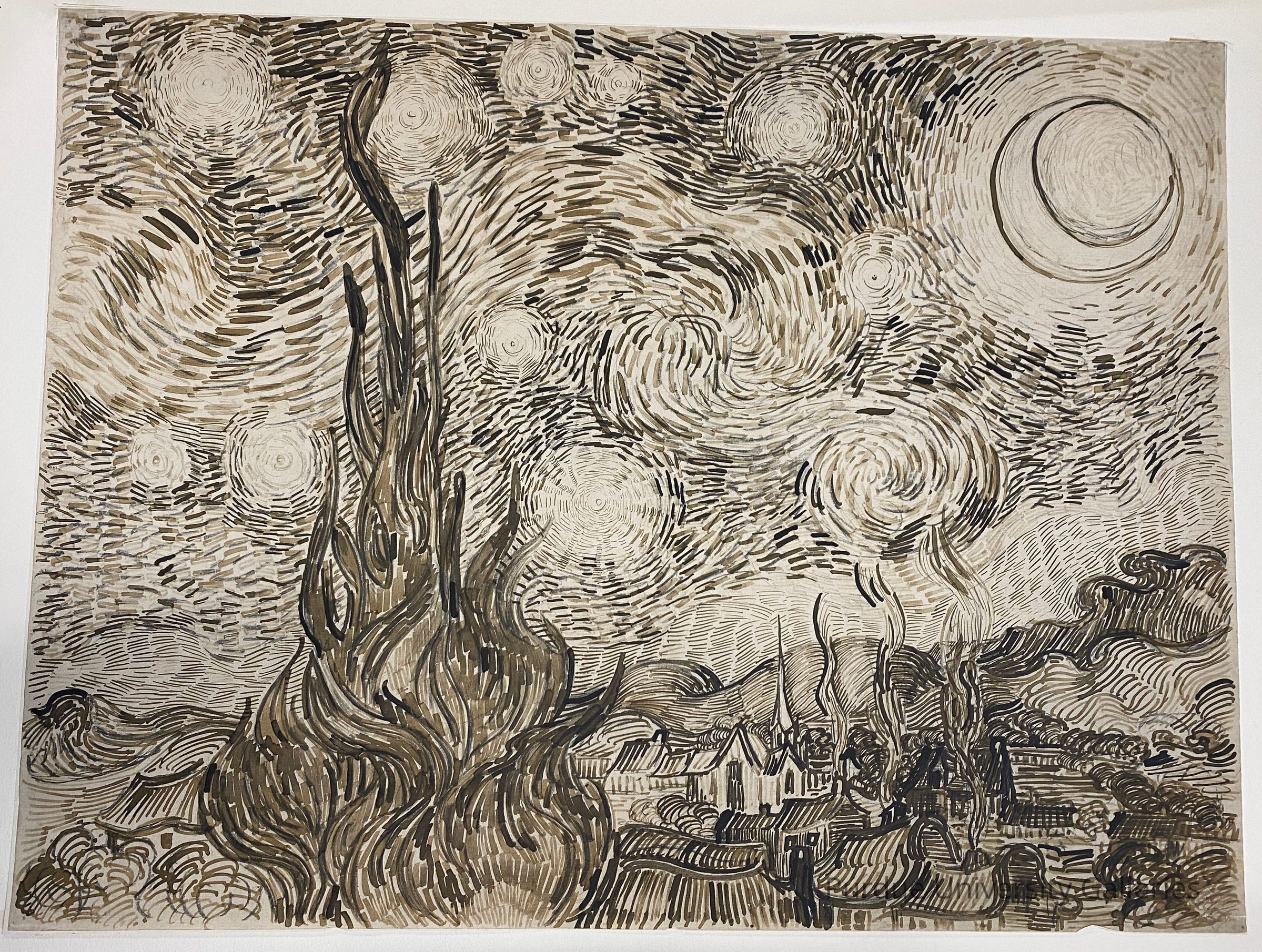 Print reproduction of Van Gogh's monochromatic study for "The Starry Night"
