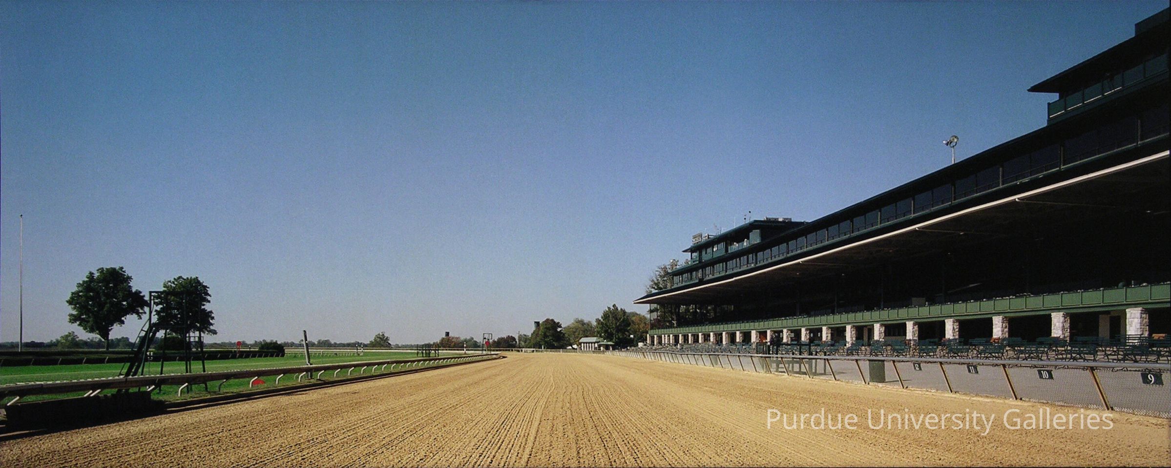 "Compression is a series of six photographs that resulted from visits by Ross to Kentucky during 2001 and 2002. They offer an interpretation of the Derby that immerses the viewer in a series of still moments leading up to the race, devoid of man or horse until the very last. The actual events of the race are implied between images, with the crowd seemingly waiting just out of frame. By compressing a period of months into tenths of a second, the photographer offers a quiet meditation on the annual event.