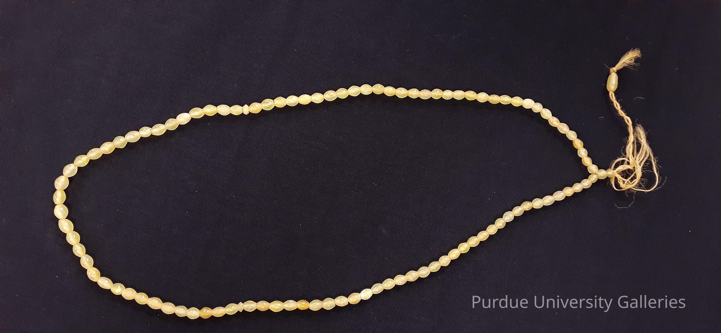 Yellow glass bead necklace on string
