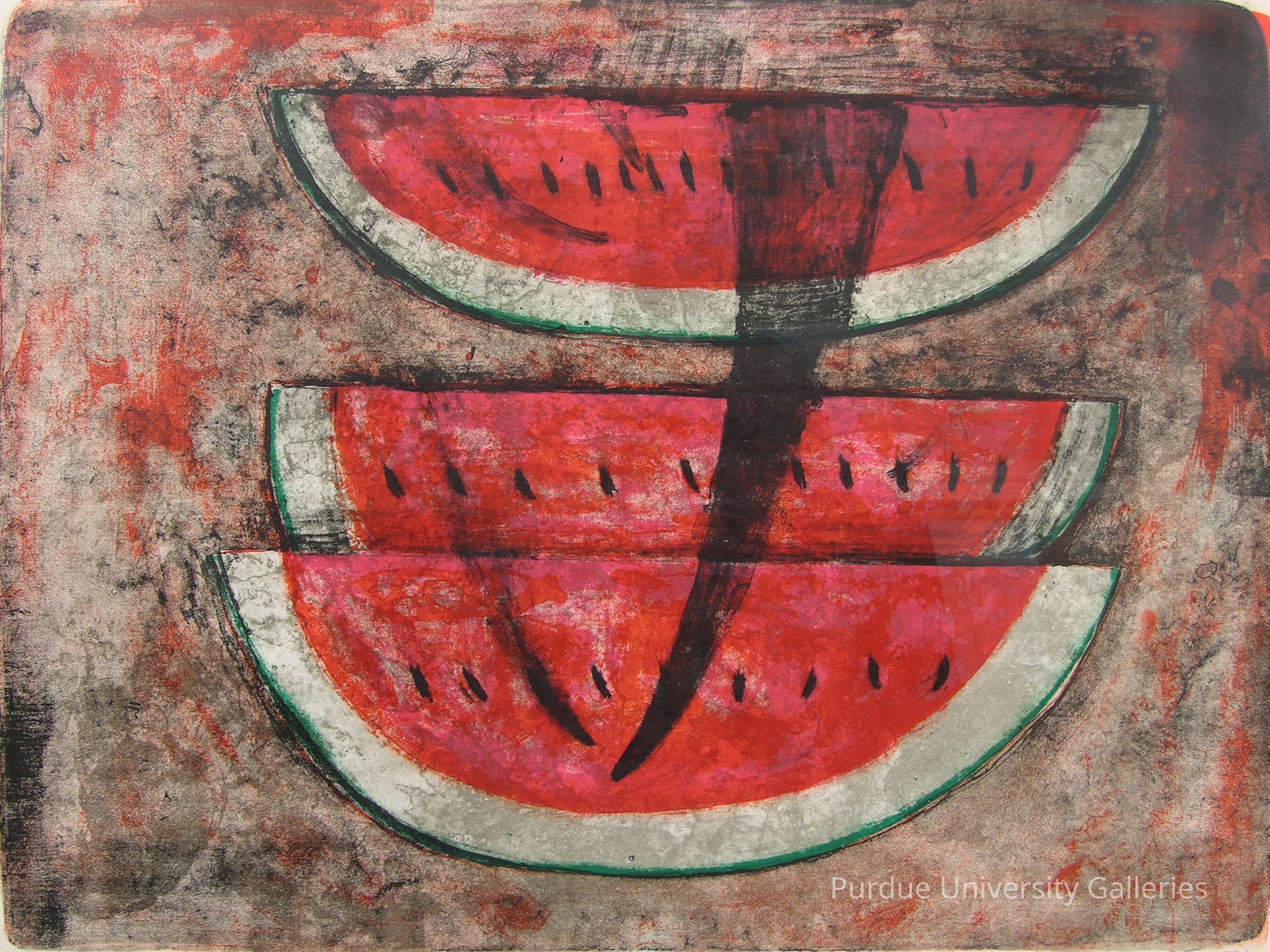 Hello from Purdue Galleries. We hope you are enjoying the last day of July and are counting down the days for the new academic year. Did you know that July is National Watermelon Month? Today’s work pulls from our amazing collection of 20th century Mexican Mural Movement artists. Can you name this artist who spent his youth working in the fruit stalls of Mexico City?
