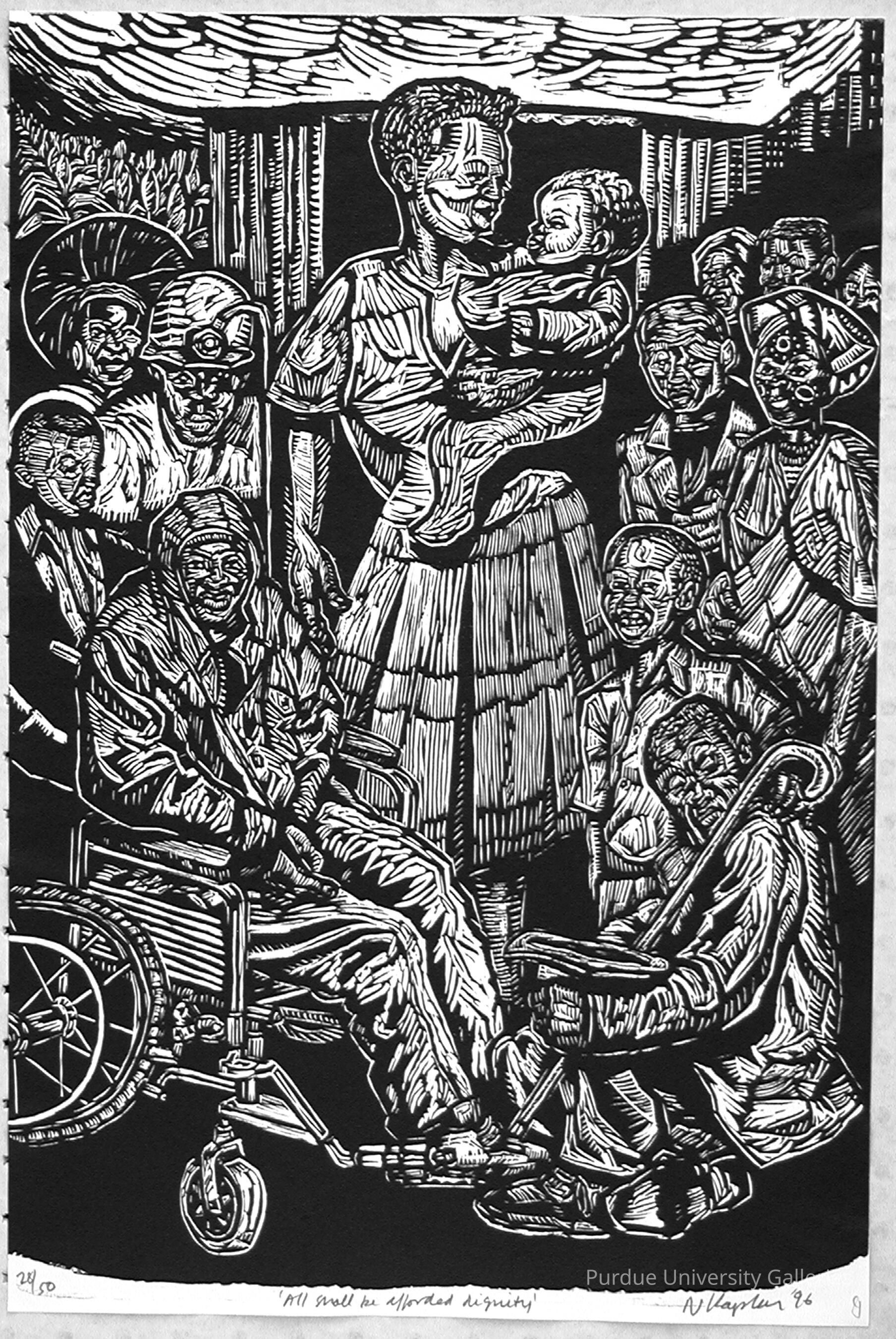 "(The Right to…) HUMAN DIGNITY Norman Kaplan Port Elizabeth/Eastern Cape linocut “… the right to have one’s dignity respected and protected, belongs to everyone "