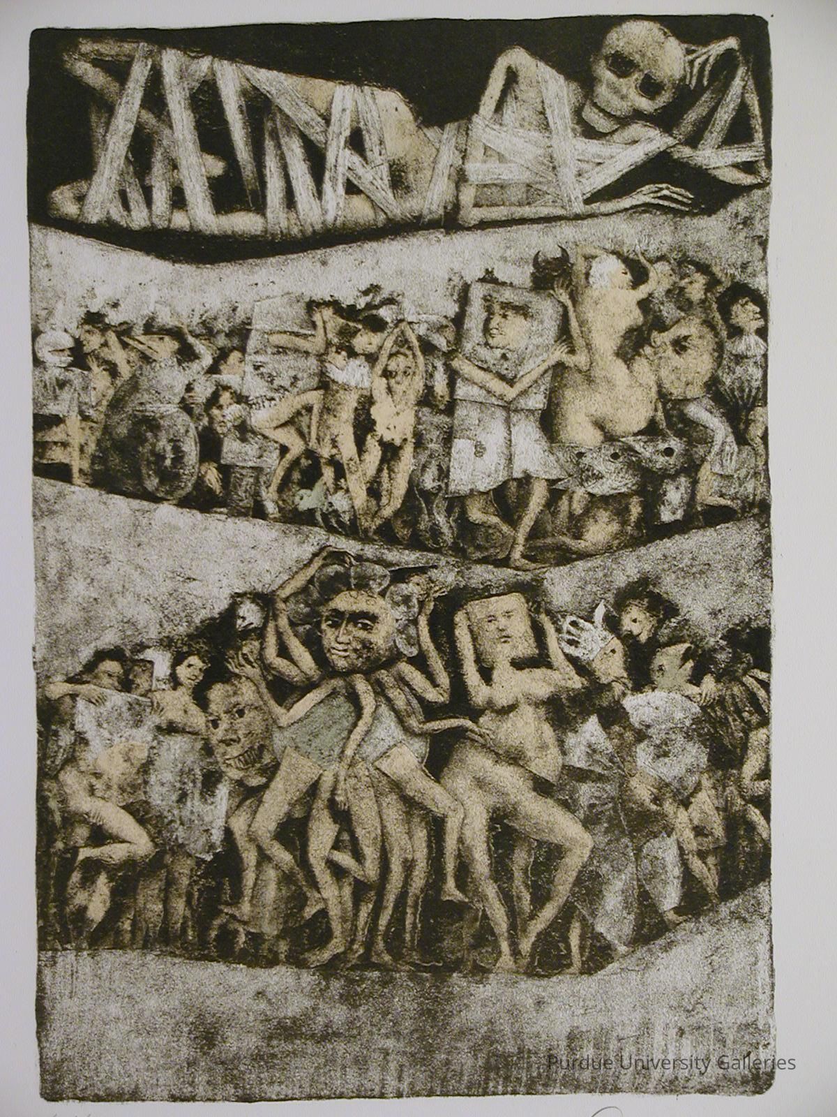 """ And now was acknowledged the presence of the Red Death. He had come like a thief in the night. And one by one dropped the revellers in the blood-bedewed halls of their revel, and died each in the despairing posture of his fall."" -Edgar Allan Poe, The Mask of the Red Death Castellon began dabbling in art at an early age after his family moved from Spain to New York City in 1921. In 1933, 18 year old Castellon was introduced to Diego Riviera and credits the famous Mexican artist for his early success as an artist. A painter first, Castellon made his first lithographs in 1937. Stongly influenced by Salvador Dali, Frederico’s surrealist, mysterious images, with their characteristic elongated figures, hover between dreams and nightmares. "