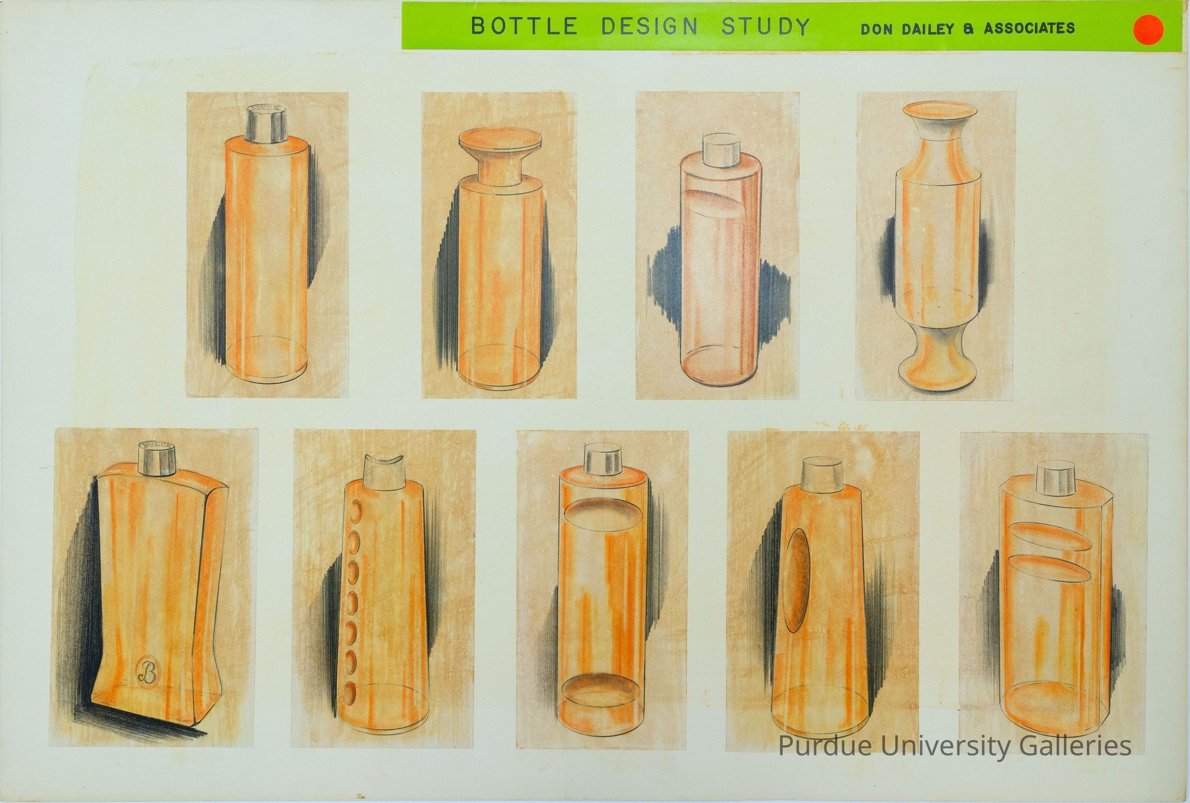 Trasparent, dense plastic shampoo bottle prototype. It's very slim. The bottom has a round conical cap-shape.Collection
