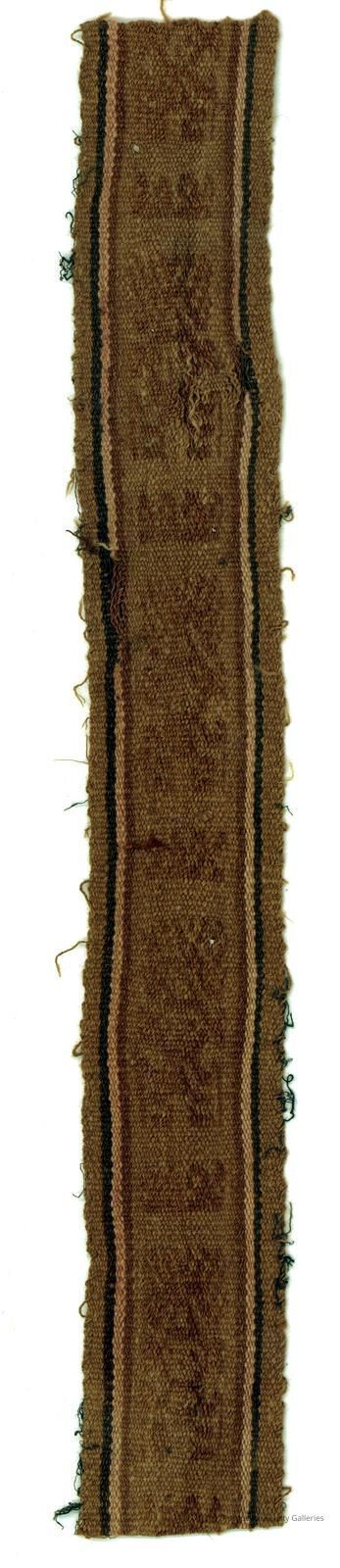 Fiber, cotton. Woven fragment with anthropomorphic figures in supplementary warp technique. Colors include brown, tan, and pink.Acquisition