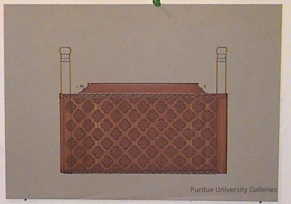 A design drawing for what appears to be a bed frame headrest, the headrest itself appears to be made of wood with what might flower patternsType of Drawing