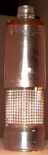 Translucent light-green, dense plastic, shampoo bottle prototyp with a square-spiked grip indented into the bottom. There is an "X" written in black marker on the bottom.Collection