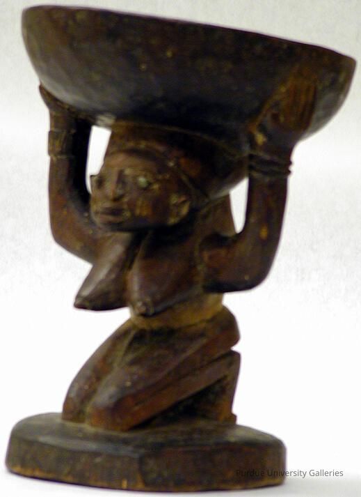This bowl is the bottom half of a Ifa divination bowl. The bowls were used in conjunction with other tools used by the Babalowa ("diviner") of the Western African Yoruba people. https://kam.illinois.edu/collection/bowl-divination-implements-opon-igede-ifa