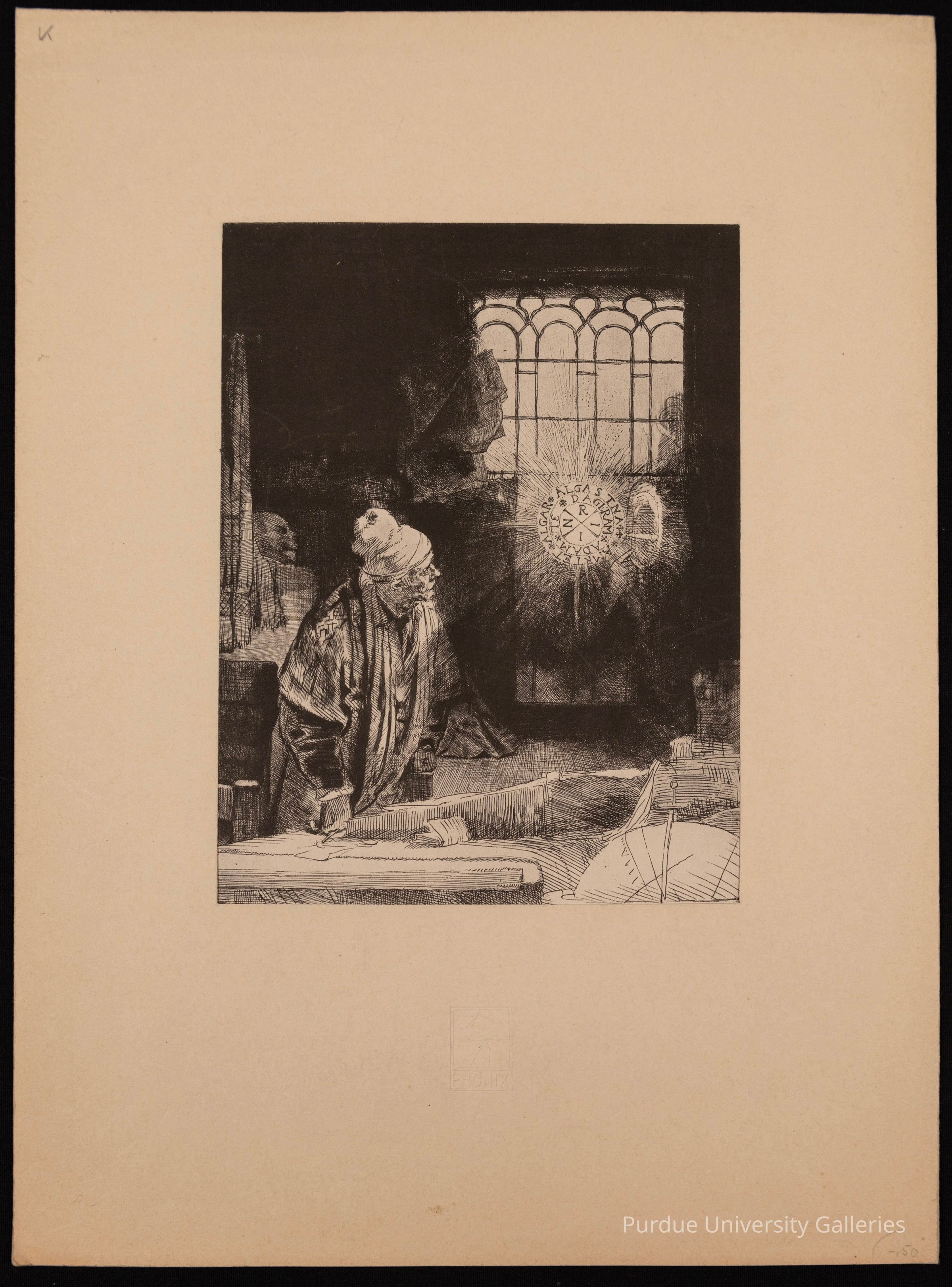 It remains to be seen whether the interpretation of the picture as the study of Faust looking at the pentagram is correct. After all, it's not impossible, and in any case the mysticism of the searching brooder is captured in a gripping way by the depiction.