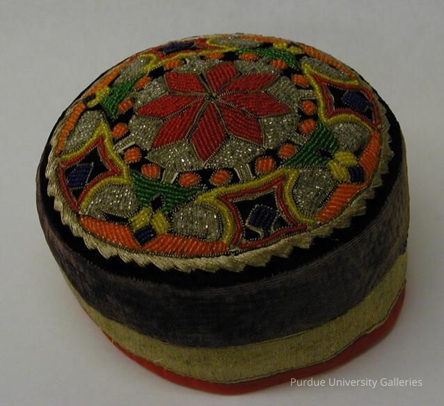 Beaded Afghan tribal hat. Possibly from the Pashtun tribe because of its beadwork and floral design at the center top. https://i.etsystatic.com/10428025/r/il/c905b3/3283002280/il_1588xN.3283002280_cwb3.jpg
