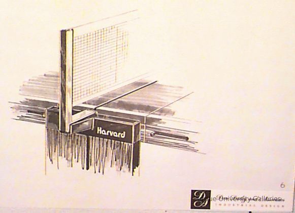 The same as 1997.03.117.19. Concept drawings of a ping pong table and net for the company "Harvard". There is a black and white "Don Dailey and Associates INDUSTRIAL DESIGN" sticker on the bottom right corner. Above that, a "6" is handwritten in pencil.