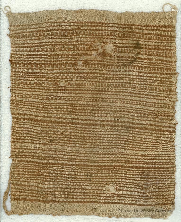 Carrying cloth in brown and white stripes with loom cords.